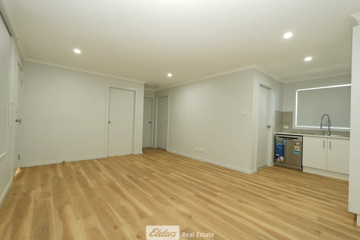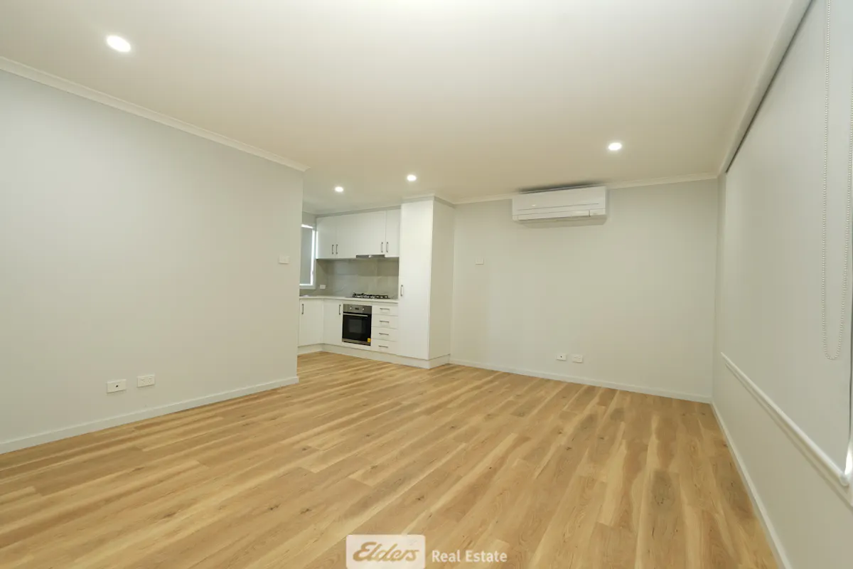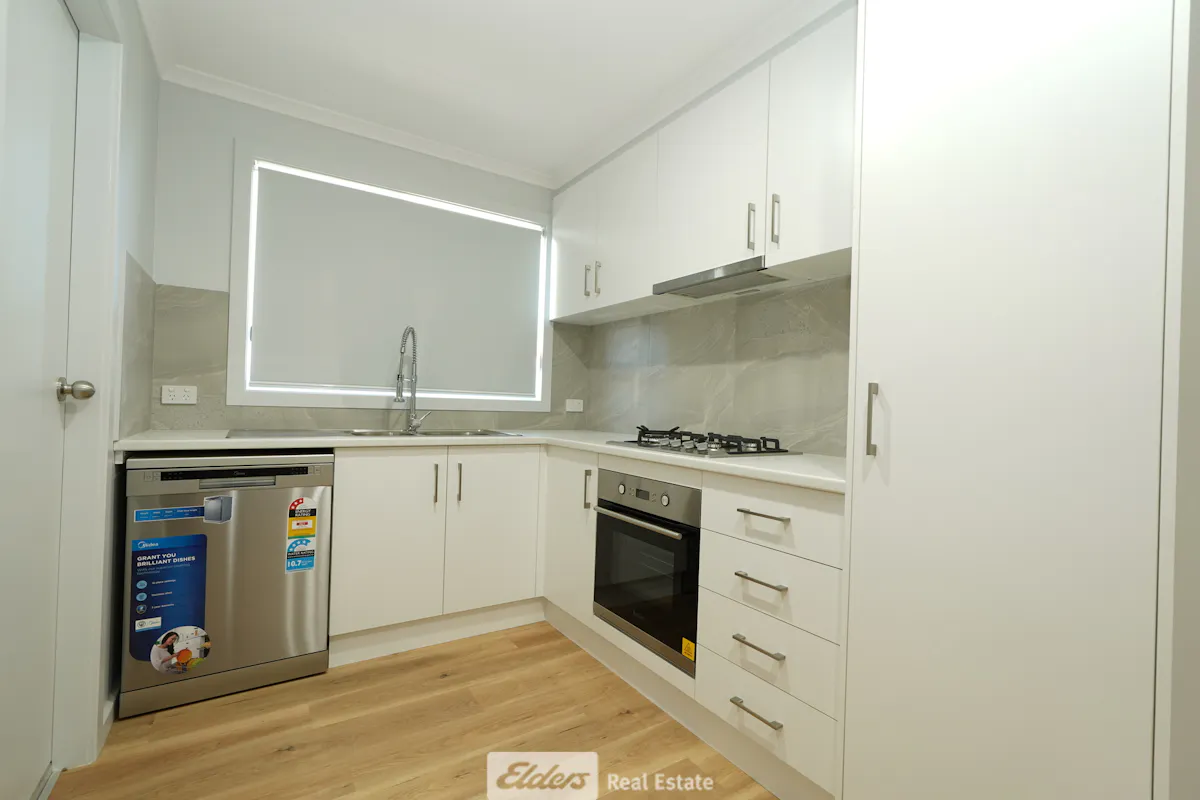 Luxury Living!This brand‑new, sophisticated unit offers contemporary comfort and refined finishes. Enjoy reverse‑cycle air conditioning, ceiling fans and built‑in wardrobes to both bedrooms, sleek new flooring, and freshly painted interiors. The modern kitchen features a gas cooktop and dishwasher, complemented by elegant day and night blinds. A garden shed provides practical additional storage. The unit is encircled by small lawn and is fully fenced.