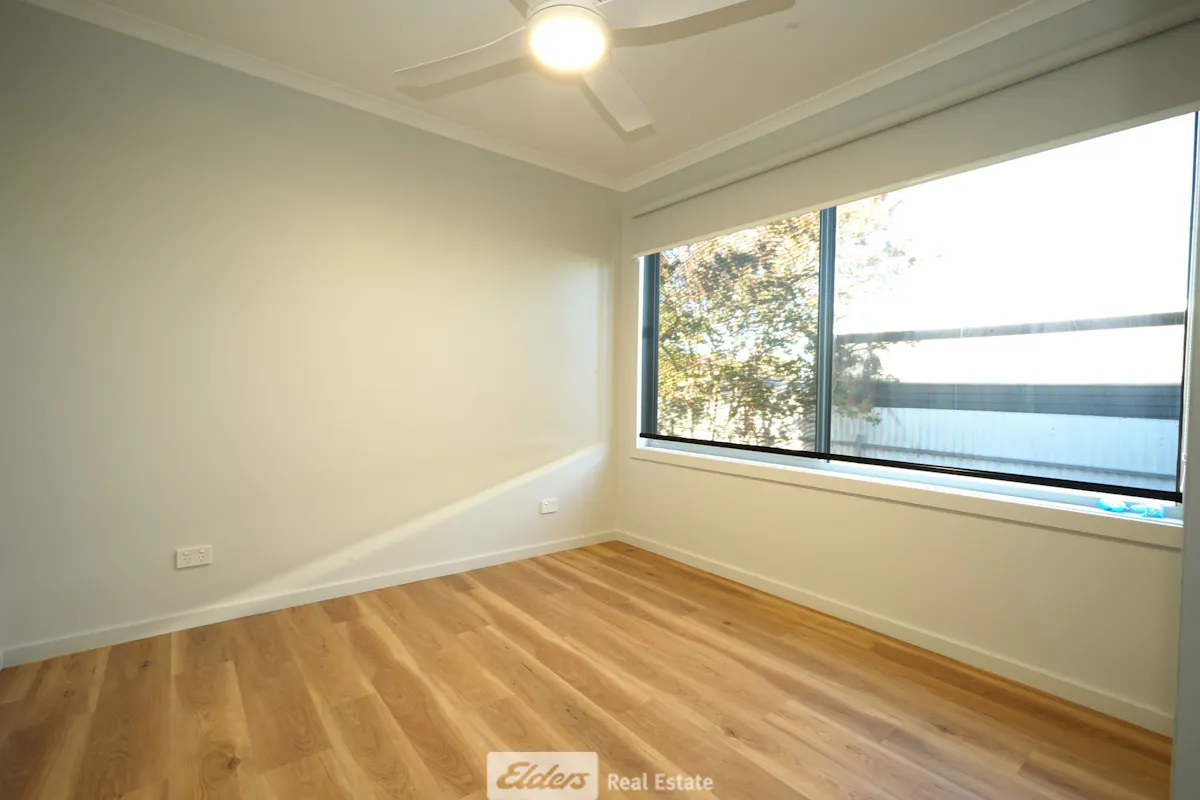 Luxury Living!This brand‑new, sophisticated unit offers contemporary comfort and refined finishes. Enjoy reverse‑cycle air conditioning, ceiling fans and built‑in wardrobes to both bedrooms, sleek new flooring, and freshly painted interiors. The modern kitchen features a gas cooktop and dishwasher, complemented by elegant day and night blinds. A garden shed provides practical additional storage. The unit is encircled by small lawn and is fully fenced.