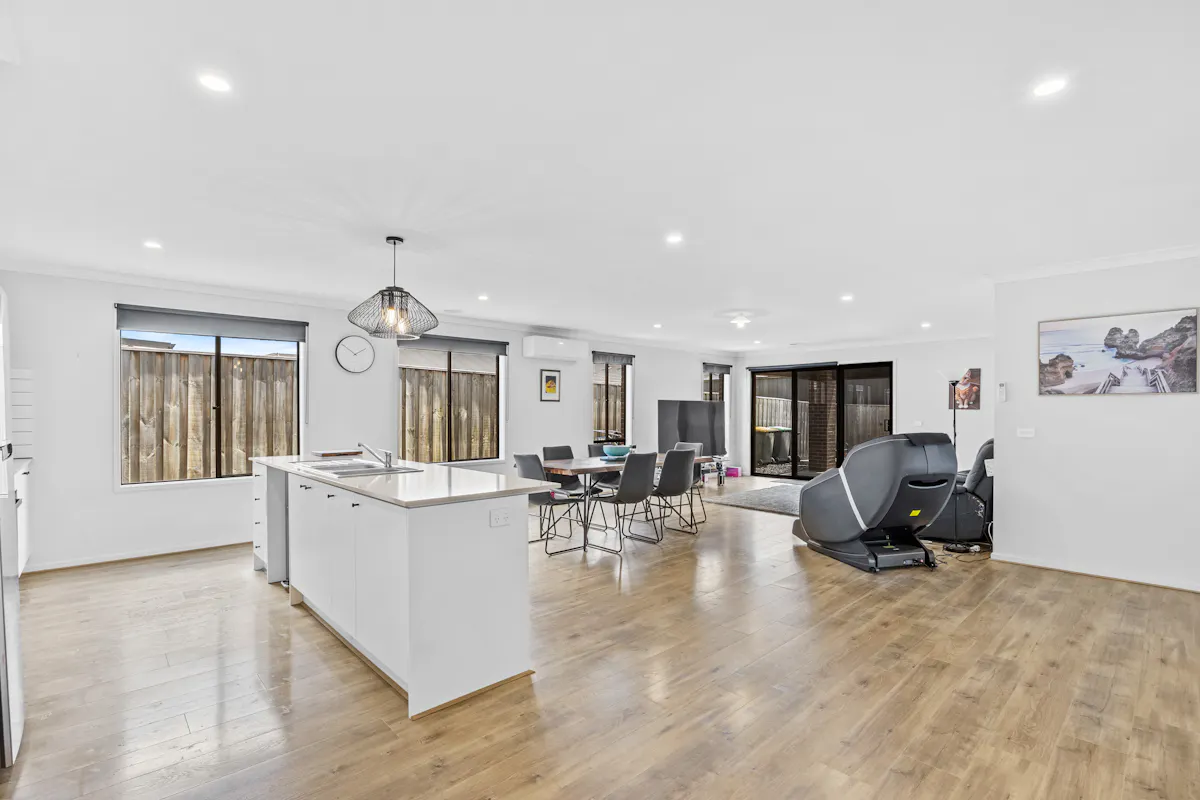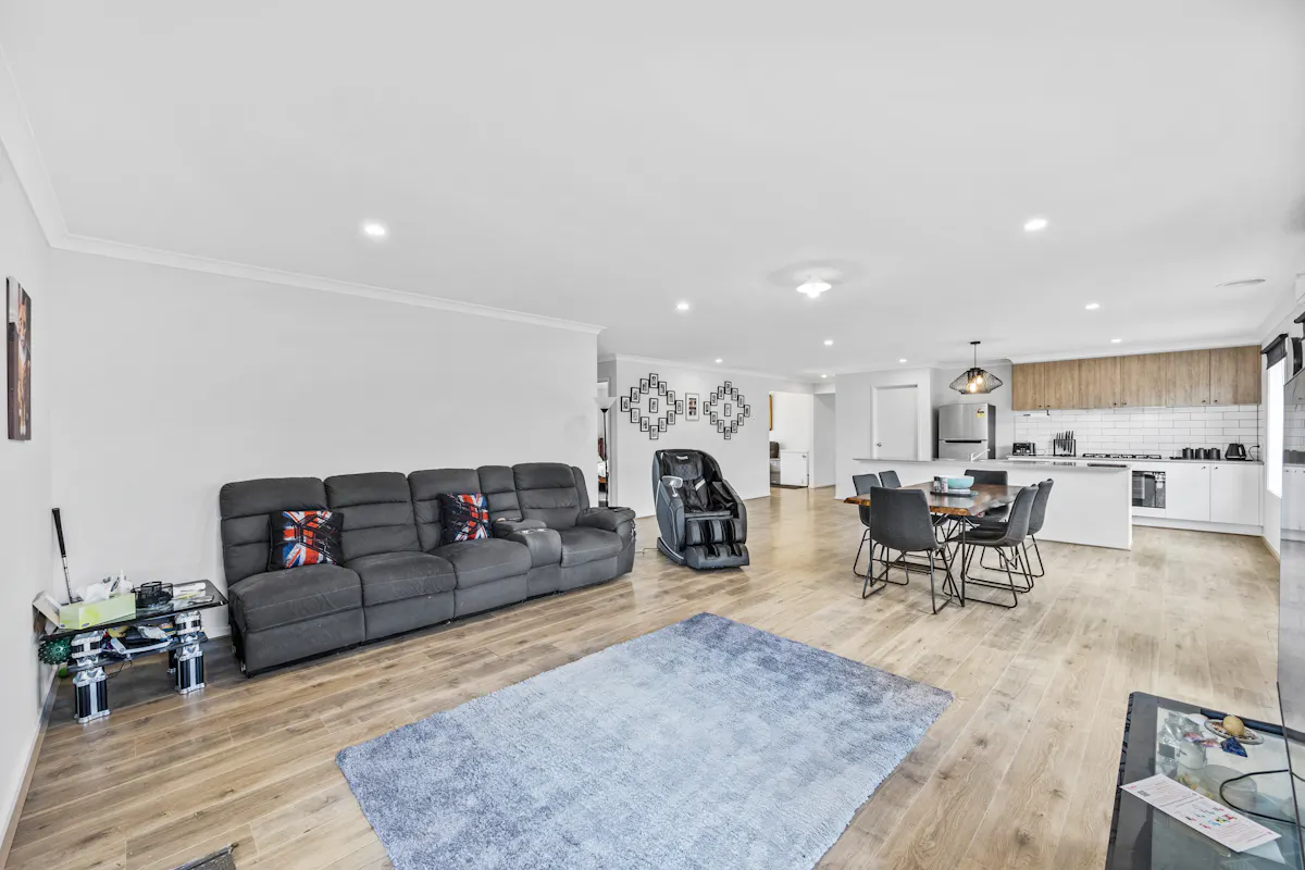 Step into a home that offers exceptional space, contemporary style, and everyday comfort. Positioned on a level block within the ever-popular Mitchell Grove Estate, this beautifully presented three-year-old residence has been thoughtfully designed to suit modern family living, with plenty of room to grow and enjoy.From the moment you enter, the generous proportions and well-planned layout are immediately apparent. Multiple living areas provide flexibility for both relaxation and entertaining, while the seamless flow of the home makes day-to-day living effortless.