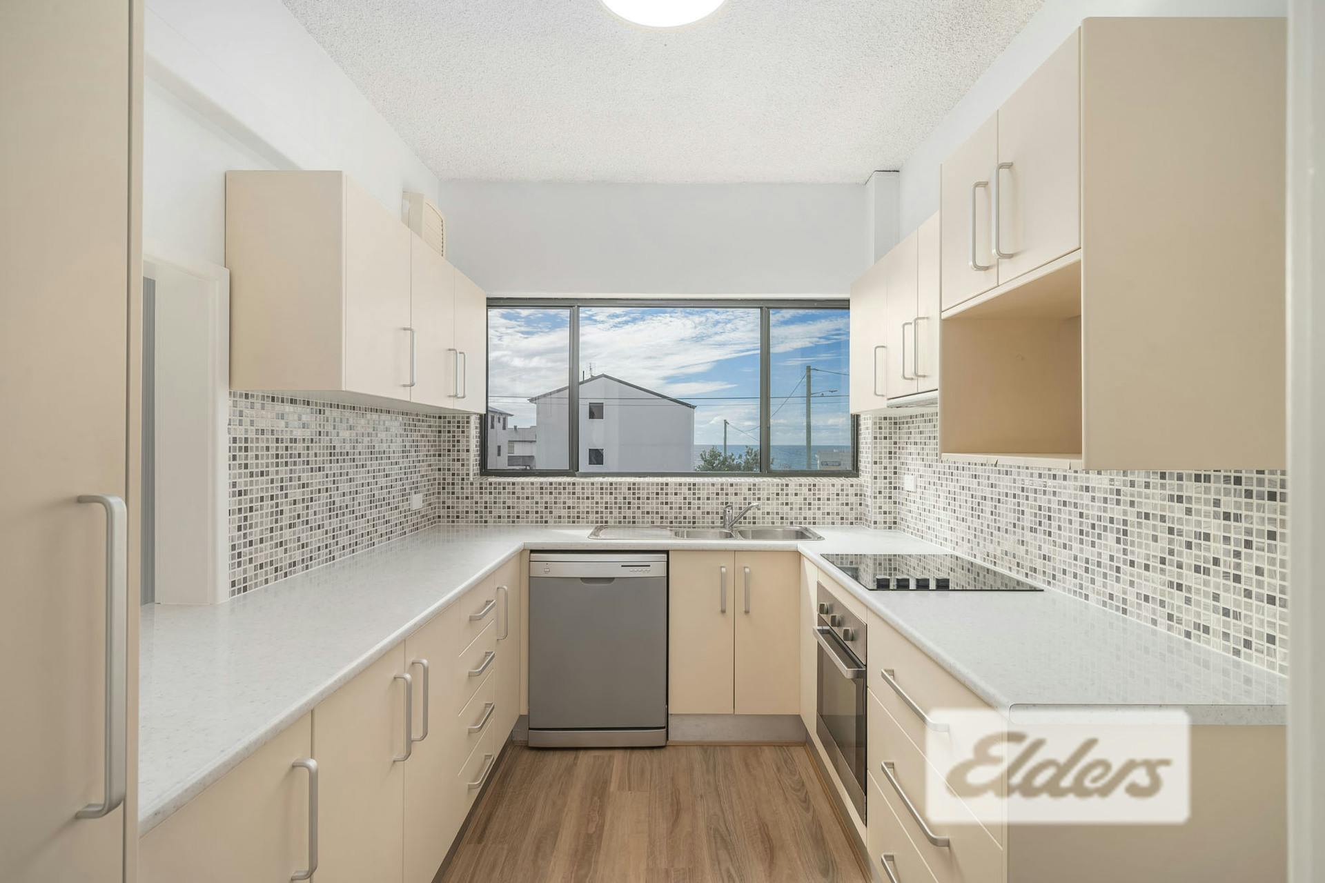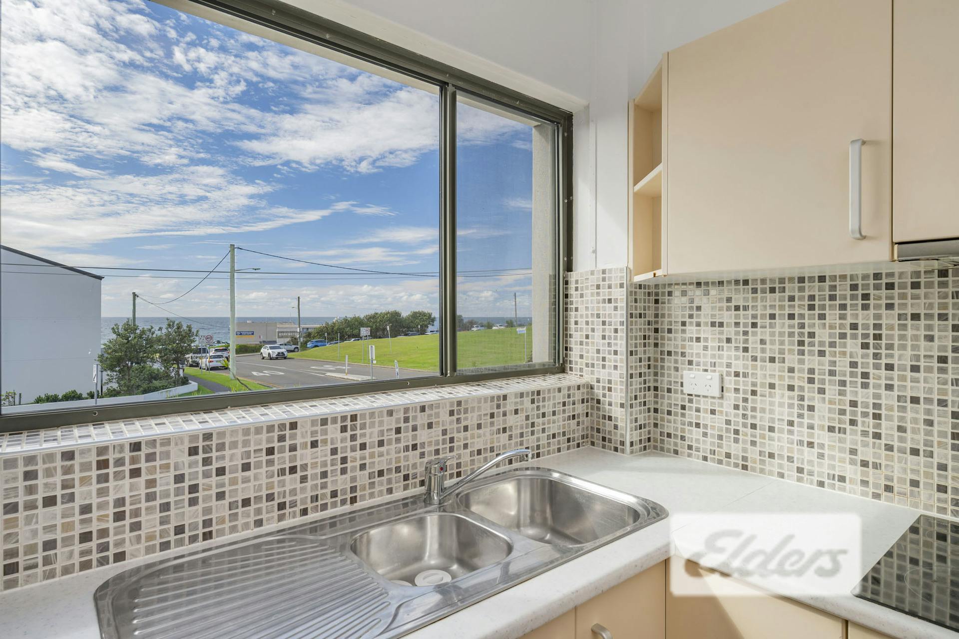 * Kitchen with Electric cooking, dishwasher and view of Merewether Beach