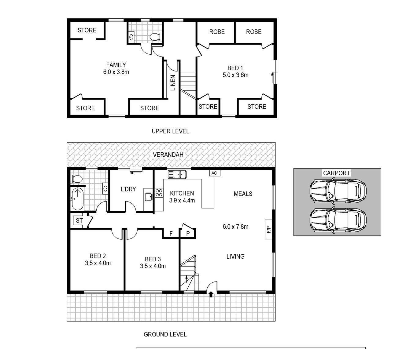 Downstairs you'll find two spacious bedrooms, a well-appointed main bathroom with deep bath, shower over bath, vanity, and toilet, plus additional storage cupboards and a full-sized laundry.