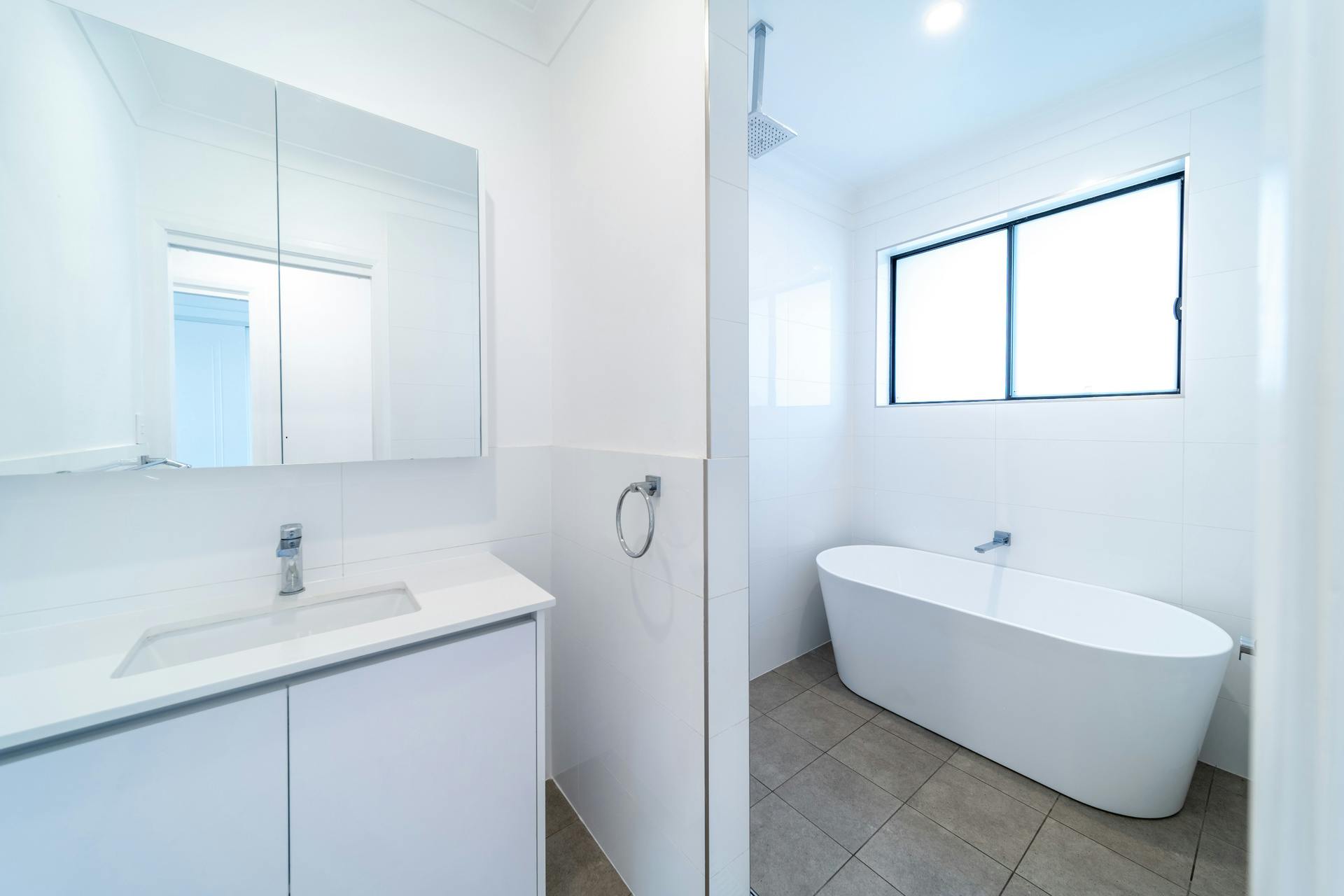 • Main bathroom, featuring a freestanding bathtub and separate shower