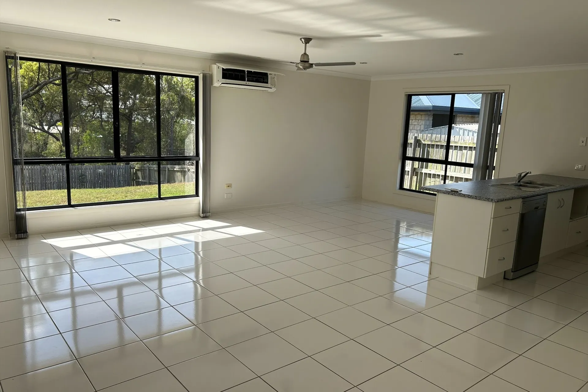 Open plan kitchen, living and dining