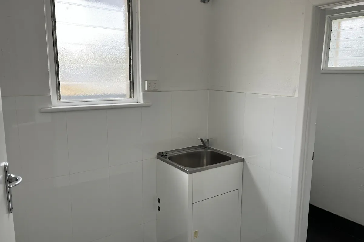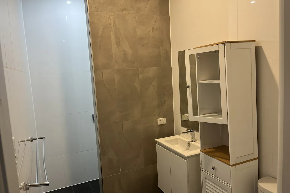 Modern bathroom with shower, vanity and toilet. Second toilet off laundry.
