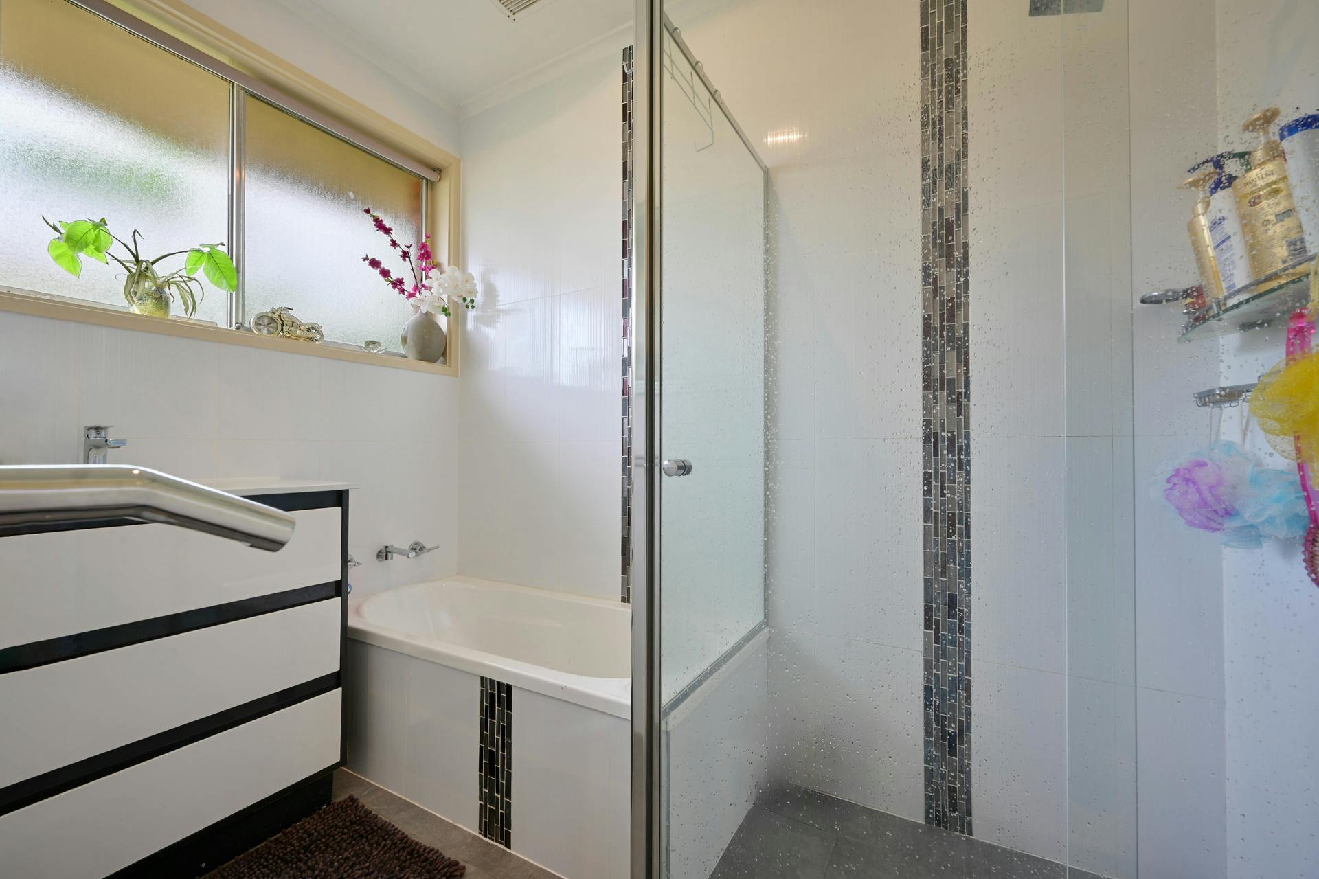 - Modern Tiled Bathroom With Walk In Shower + Bath