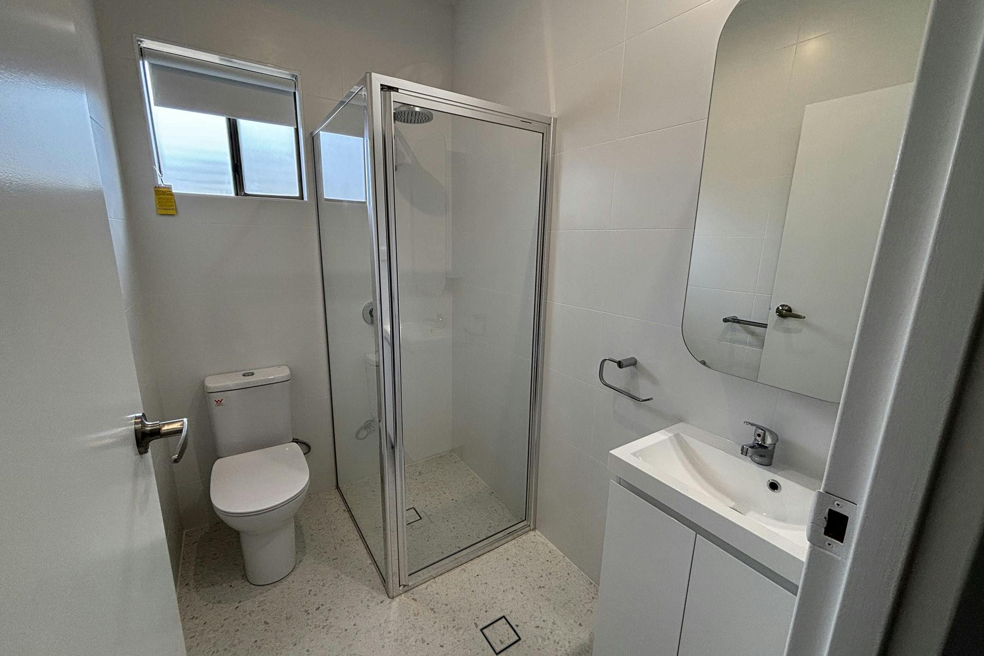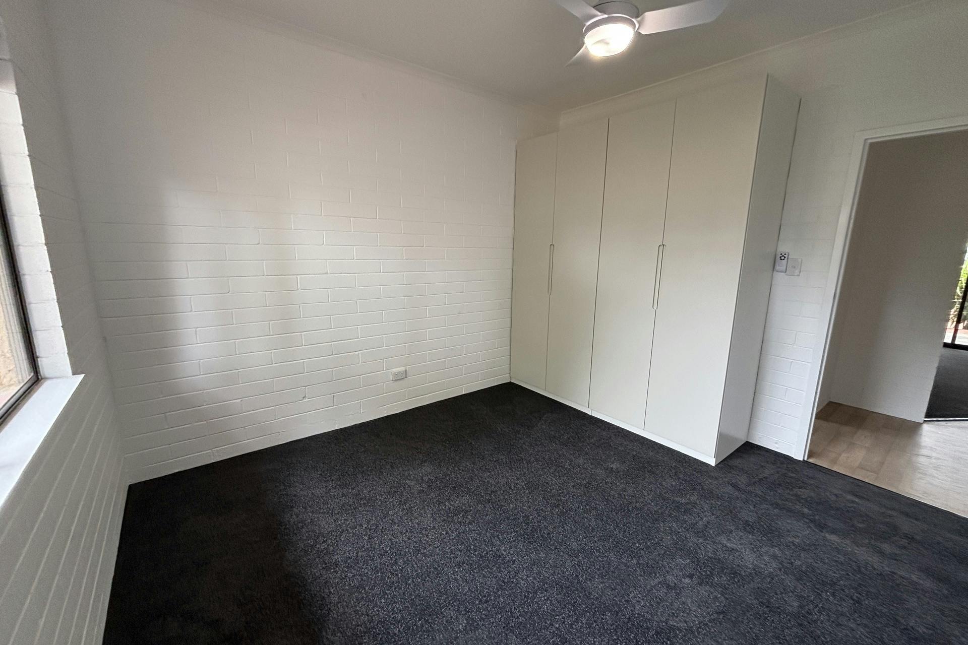 Both bedrooms are positioned off the main living area and include built-in wardrobes, ceiling fans, and generous storage. The recently renovated bathroom showcases a fresh, modern design with ample storage and a spacious shower.