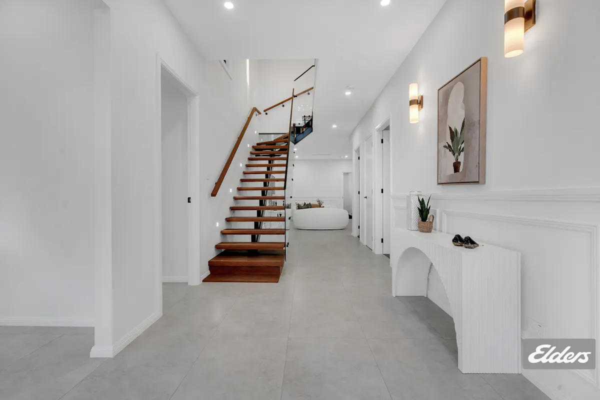 Elders Real Estate Presents this residence drenched in the timeless & impeccable French Provincial style offers everything an active stylistic family would expect. Boasting a grand facade & foyer entrance with opulent interiors throughout, this residence is designed for luxury family livingThis home features impressive ceiling heights of 3 meters on the first floor and 2.7 meters on the second floor, creating a spacious and open feel throughout. It boasts five bedrooms, including luxurious master suites with walk-in wardrobes. Three additional bedrooms come with built-in wardrobes and share a well-appointed bathroom featuring a freestanding bathtub, floating vanity, and a semi-frameless shower with an oversized recess. The family room features a cozy fireplace, adding warmth and character to the home, while the media room provides a soundproof space for movie nights. A timber open staircase with a pine stringer adds to the home's elegant design.