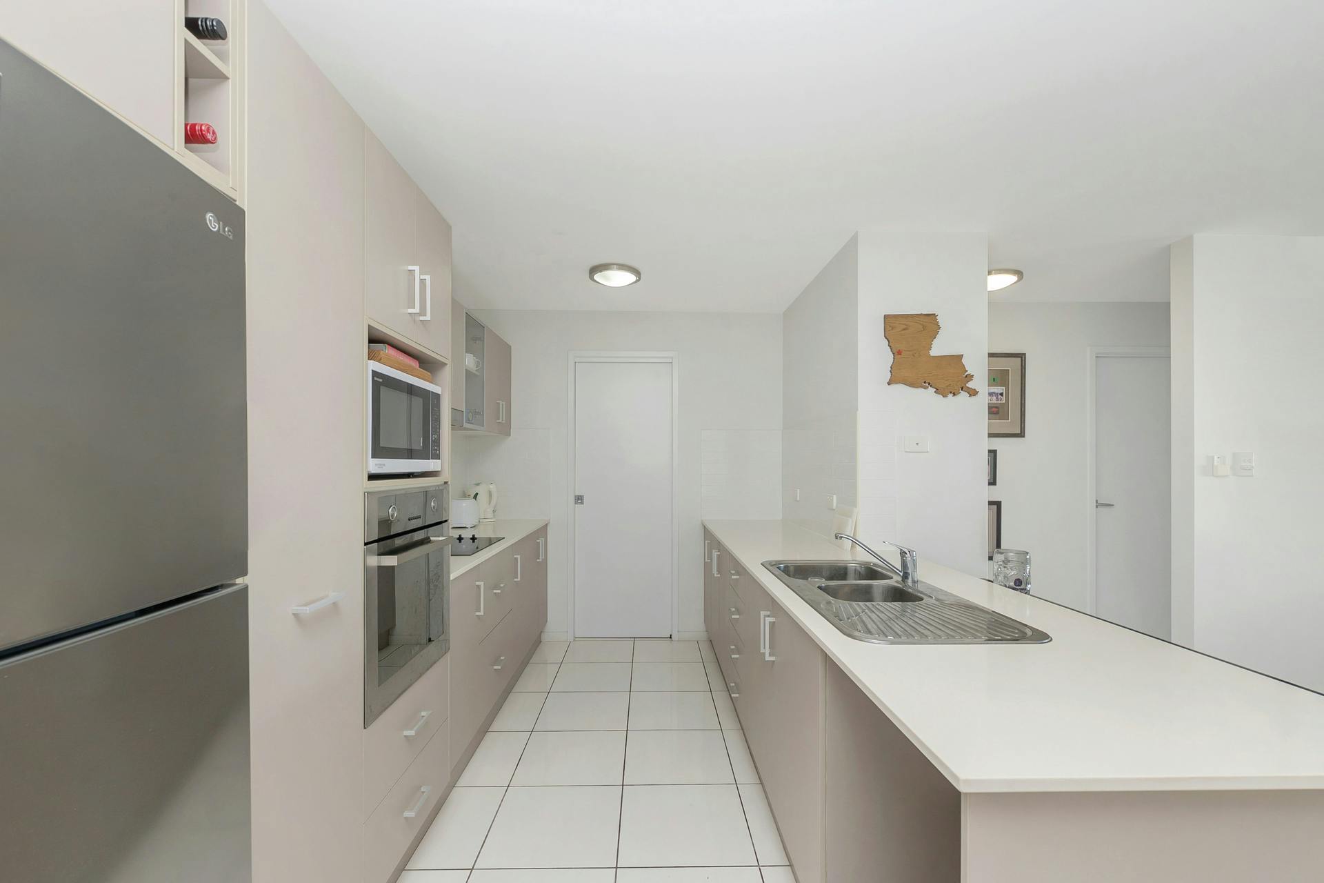 • Open plan kitchen with ample storage and stainless steel oven