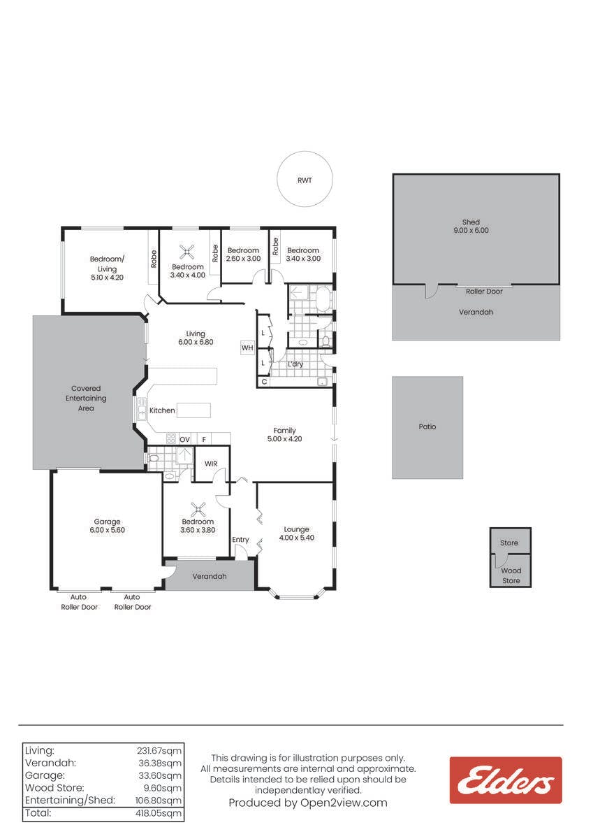 A substantial 9m x 6m shed with a 3m wide verandah and tool bench caters perfectly to trades, hobbyists or additional storage needs. Completing the package is a 22,000 litre rainwater tank with pressure pump, adding practical efficiency to the property.