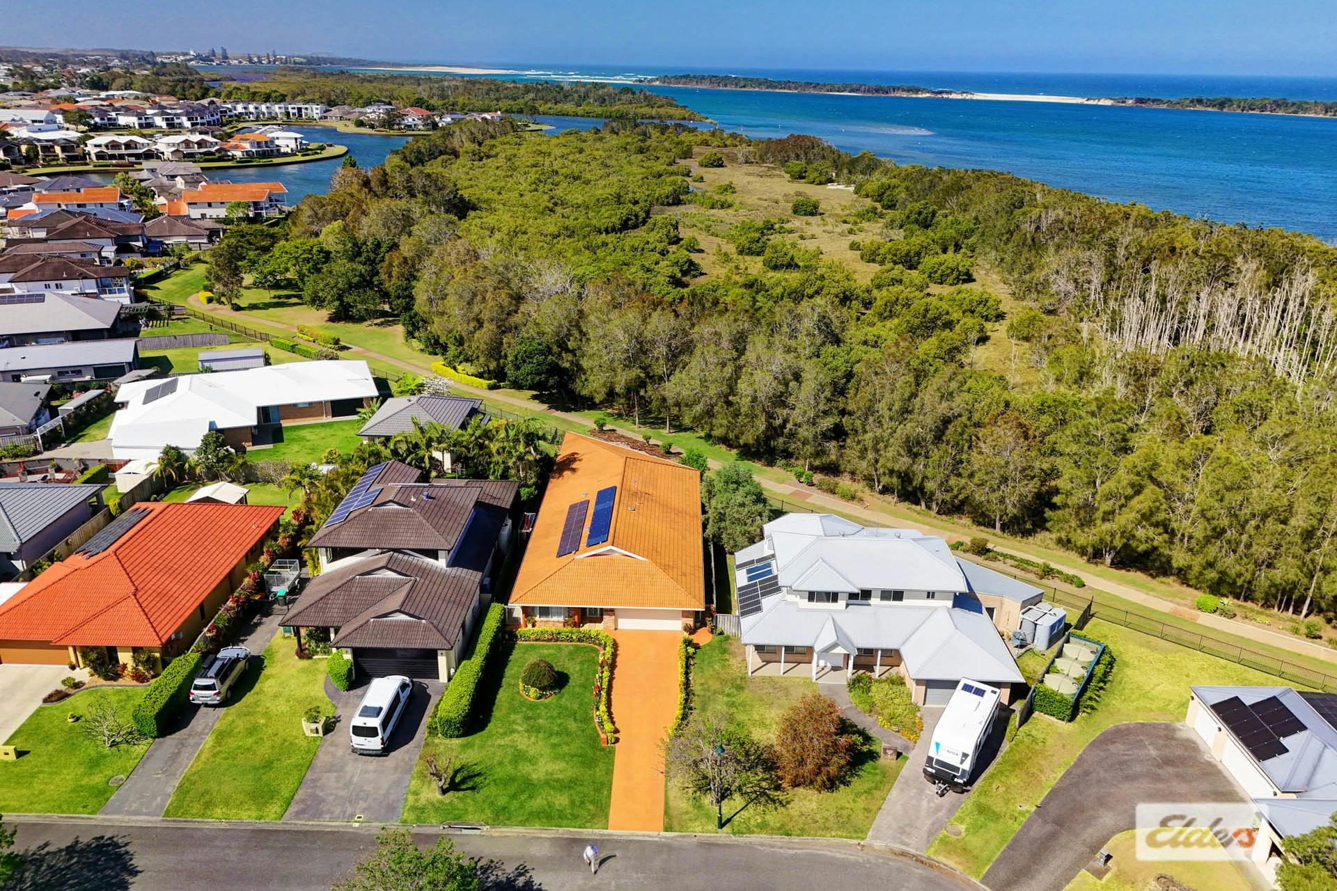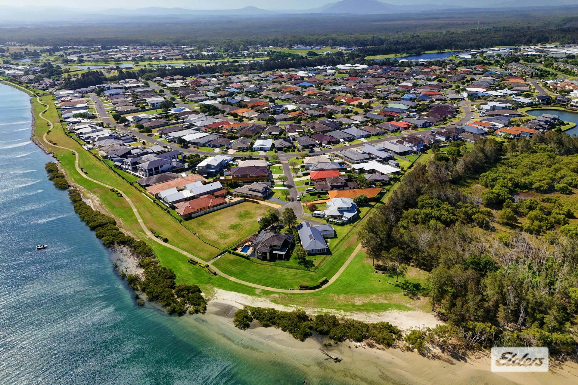 Nestled within the serene coastal precinct of Harrington, 10 Erin Close is a picturesque sanctuary, boasting an impressive 350m2 of living space (approx.) that presents a perfect blend of luxury, comfort, and functionality, tailored for the needs of expanding families who appreciate breathtaking river views and the finer things in life.This immaculately presented home, brought to the market by its original designer owners, offers a versatile layout featuring 3 large bedrooms with the potential to configure a 4th. The master suite is a statement in sophistication with a generous walk-in wardrobe and private ensuite. High raked ceilings cascade over the open-plan design, where a stunning kitchen, complete with granite benchtops, becomes the heart of the home.