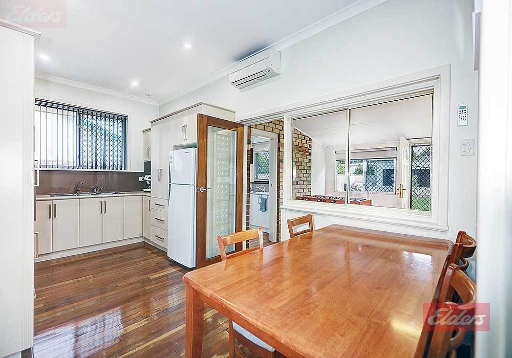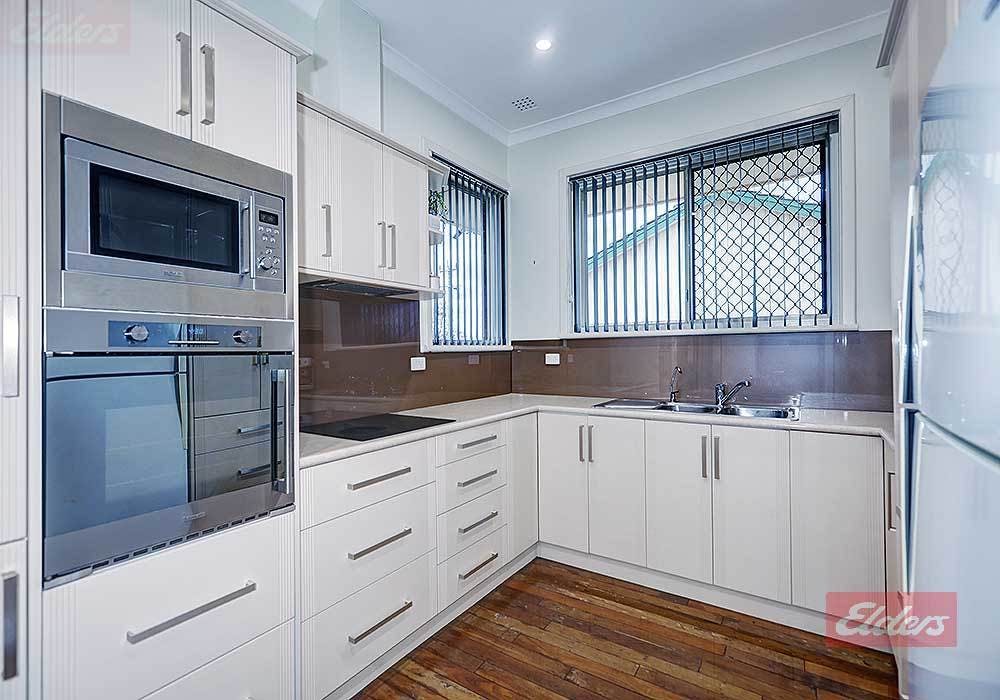 Updated kitchen/dining with wall oven, integrated microwave, built in pantry, ample cupboard and bench space and R/C split system air conditioning