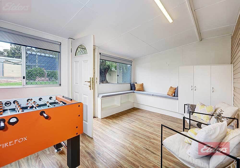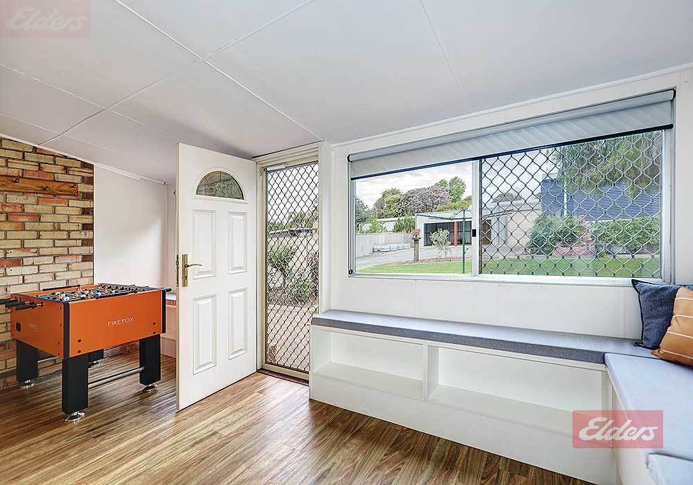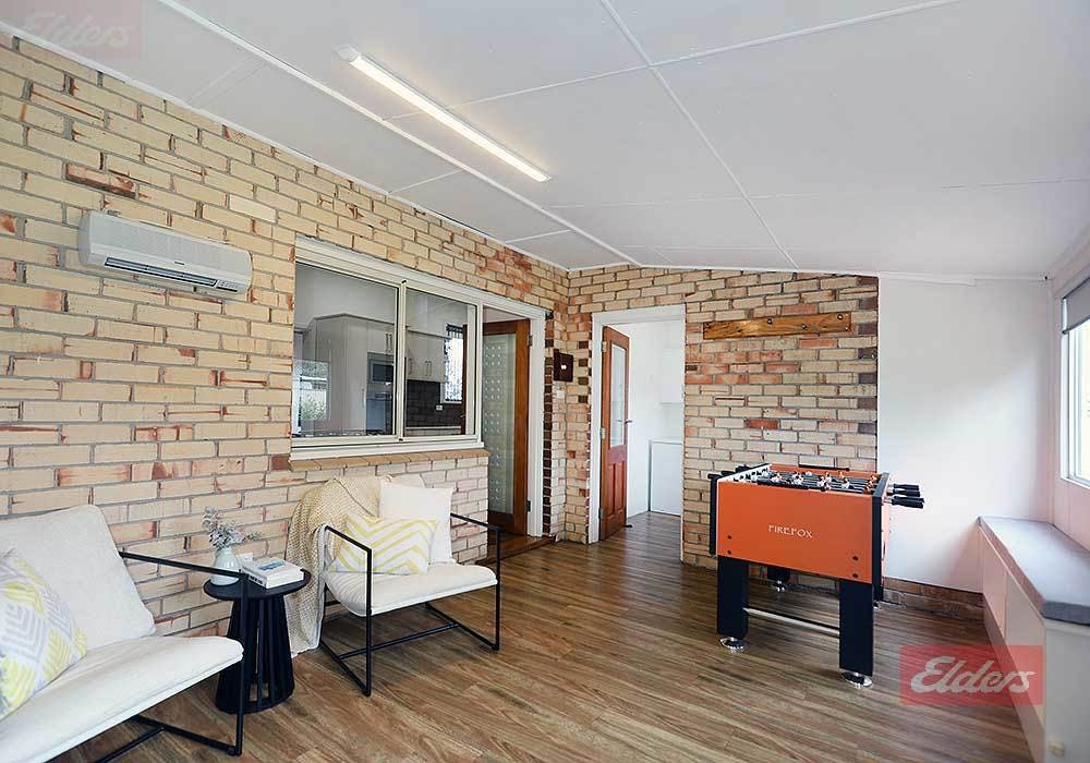 Sleep out style second living/kids' playroom/ games room with built in seating and under bench storage and cupboards