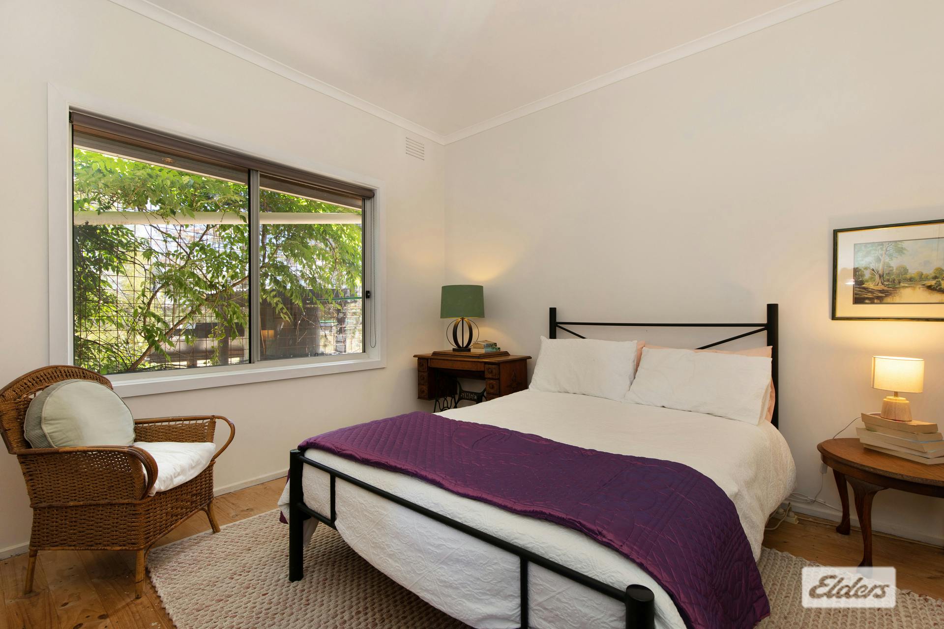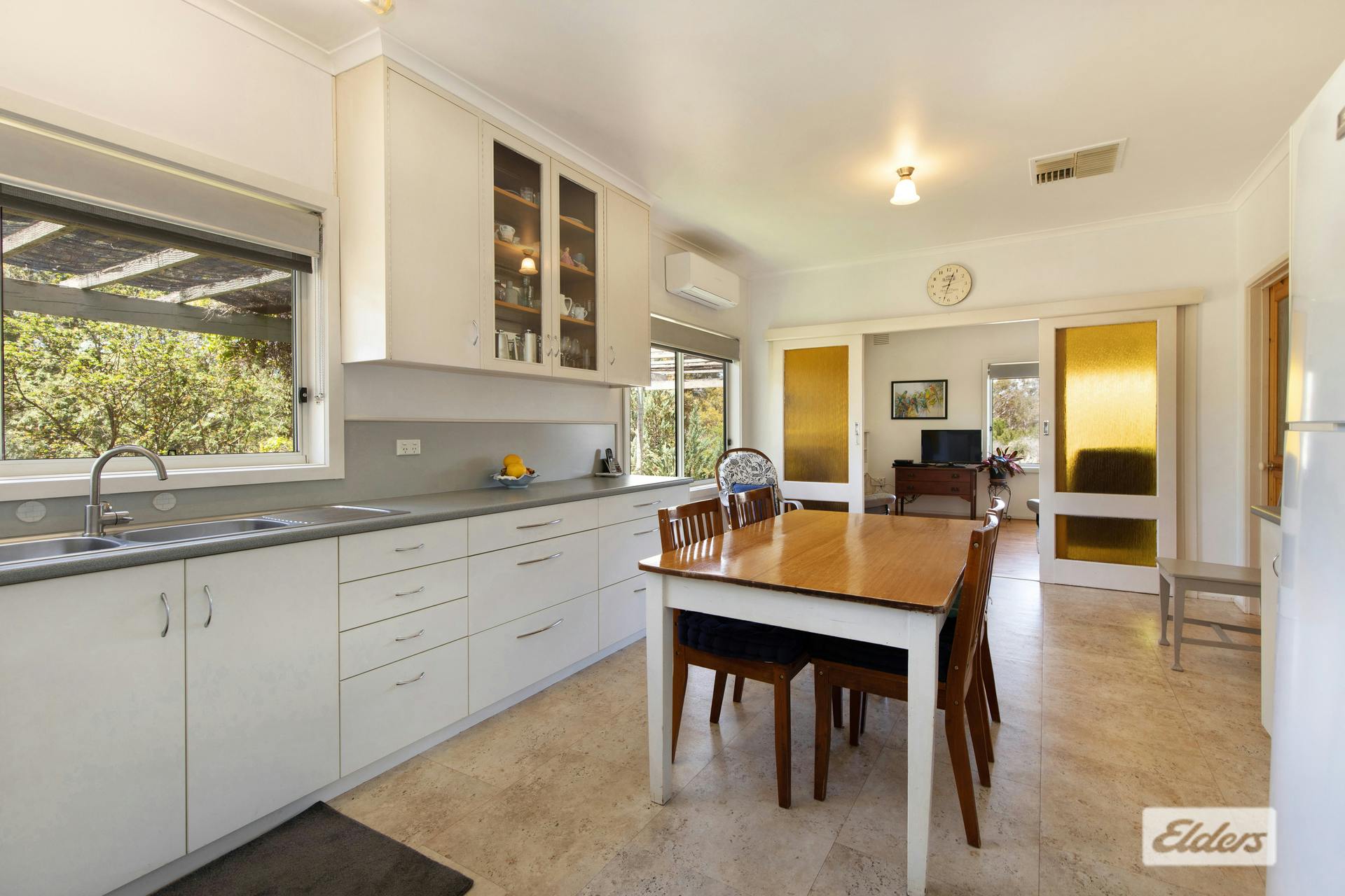 The laundry is a good size and features a bench with a redgum top that was from milled from this property. Nice high 9 foot ceilings create a lovely sense of space and the majority of the home has beautiful polished timber floors, including the lounge which has a privacy wall from the front door, and a brick fireplace with an inset solid fuel heater under a mantelpiece that extends the length of the wall with built-in shelving below on either side. Further heating and cooling options include reverse cycle split systems and a new evaporative air-conditioner.