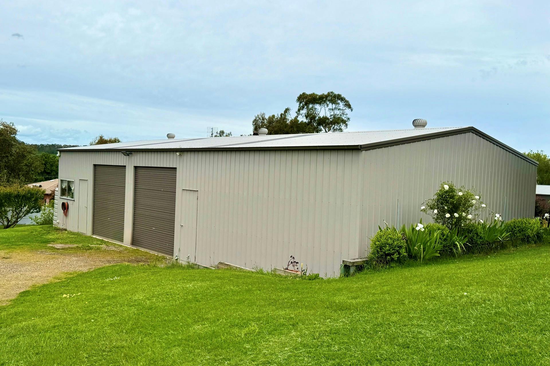 • Large 20m* x 9m* shed with toilet, bar and wood heater - concrete floor, power and water connected plus instant electric hot water.