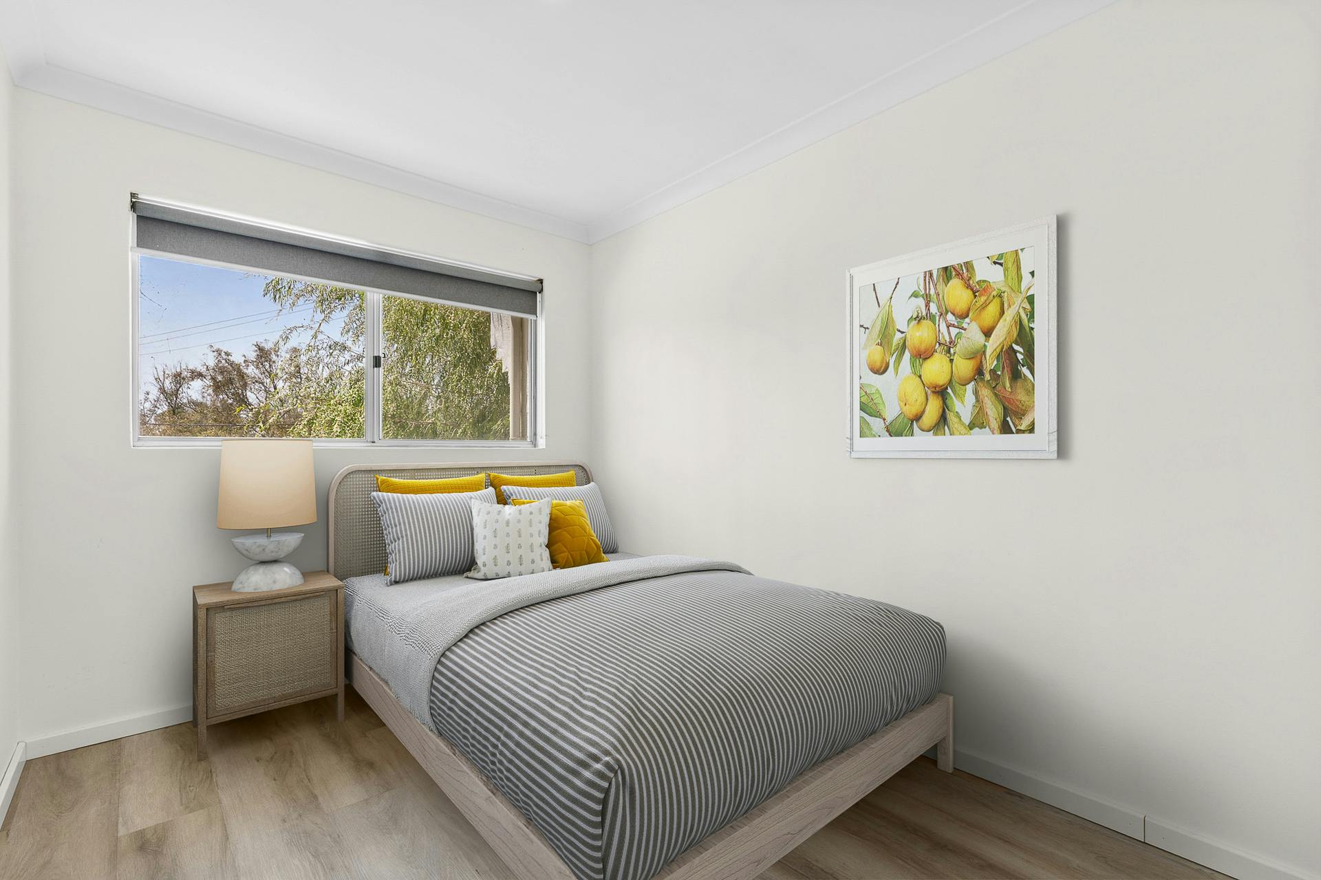 The second bedroom features a recessed wall area, ideal for future built-in storage or a study nook.