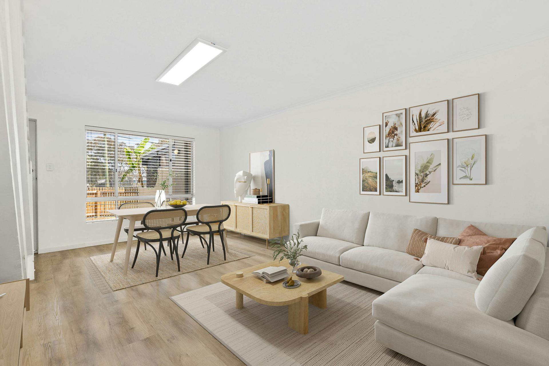 • Open-plan living area with neutral décor