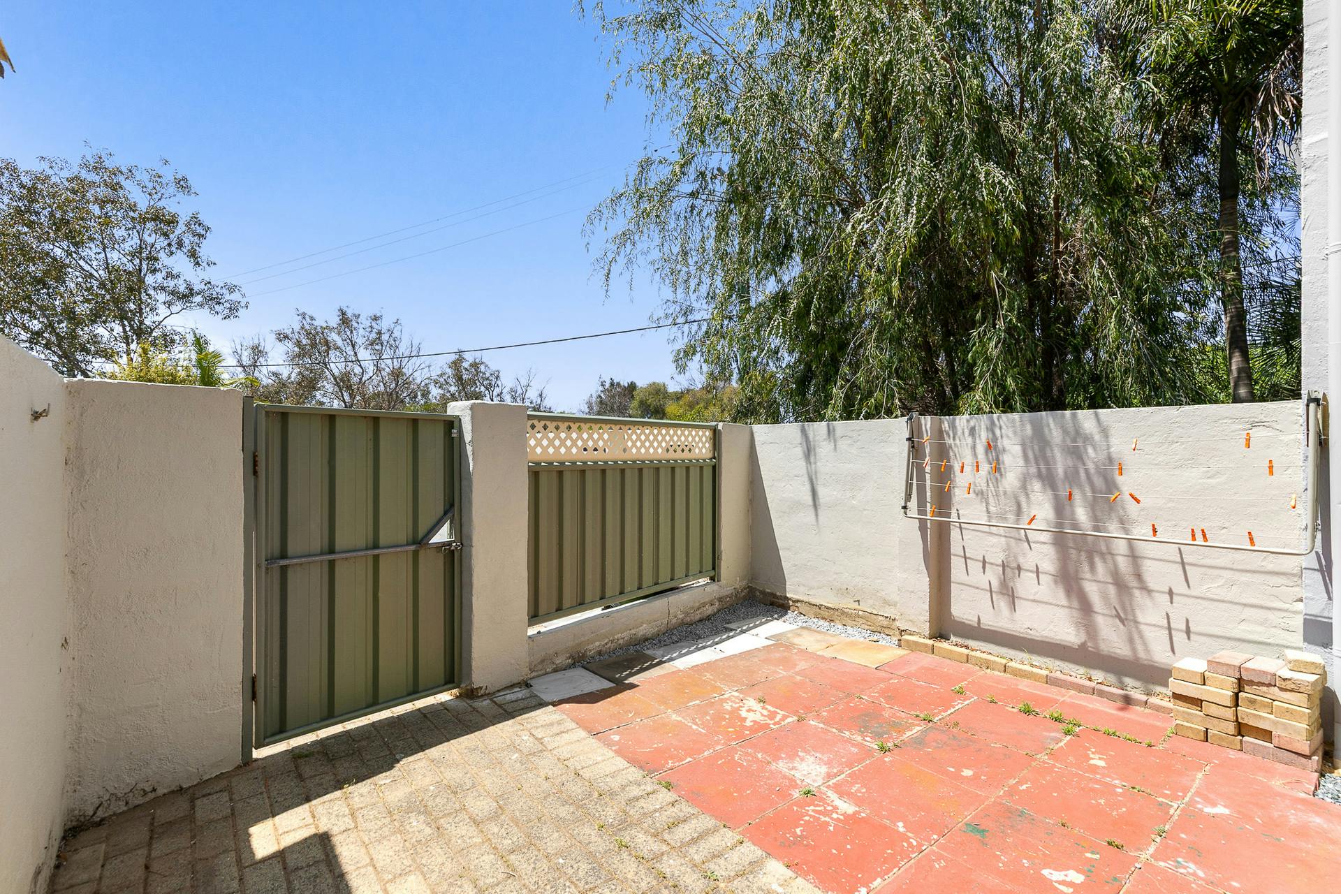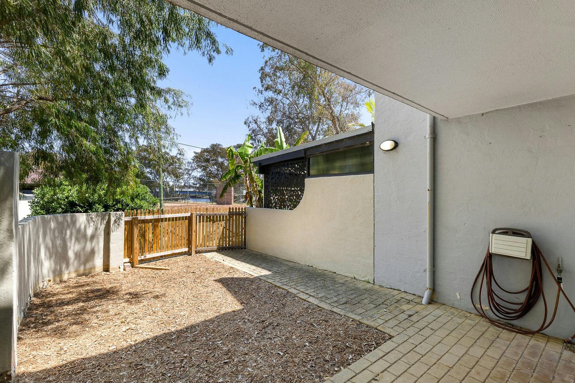 A private front courtyard offers the ideal spot for morning coffees or slow afternoons in the sun. A second enclosed private rear courtyard provides added flexibility for entertaining, outdoor dining, or extra storage-rare for a unit of this size and style.