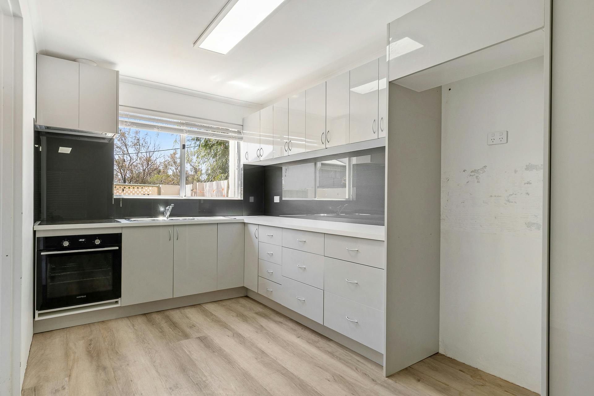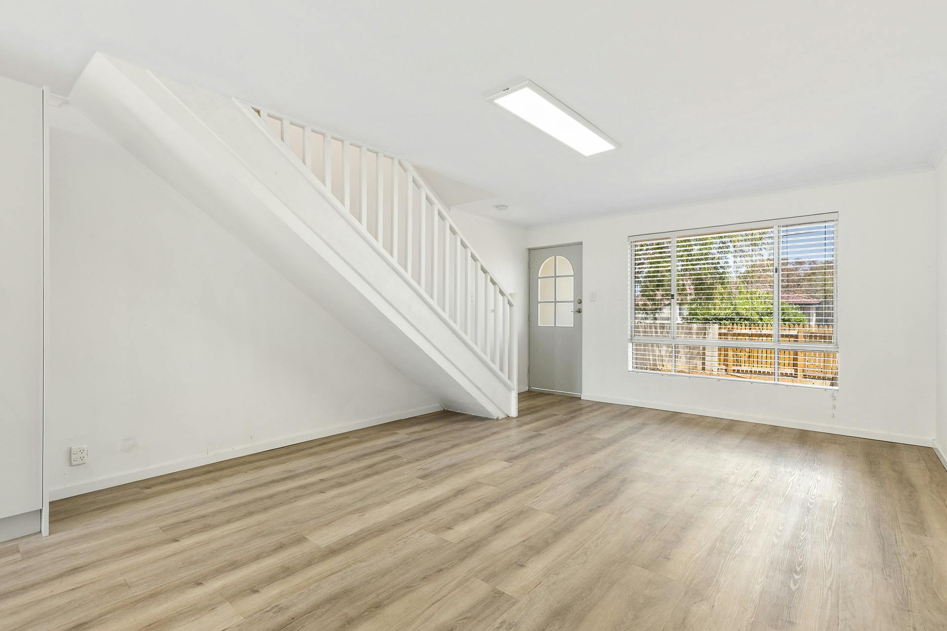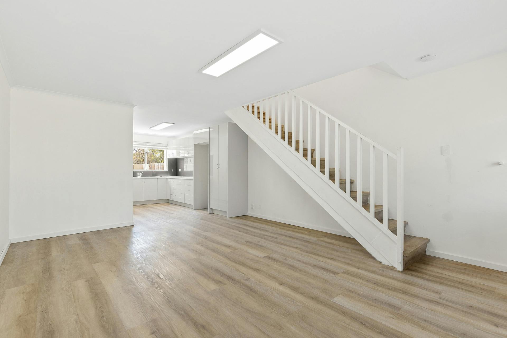 Step inside to a bright and welcoming open-plan living space, enhanced by wood-look flooring, neutral décor, upgraded lighting, and a layout designed for easy living. The updated kitchen features electric appliances, overhead cabinetry, and a smart, functional design that connects effortlessly with the main living area.