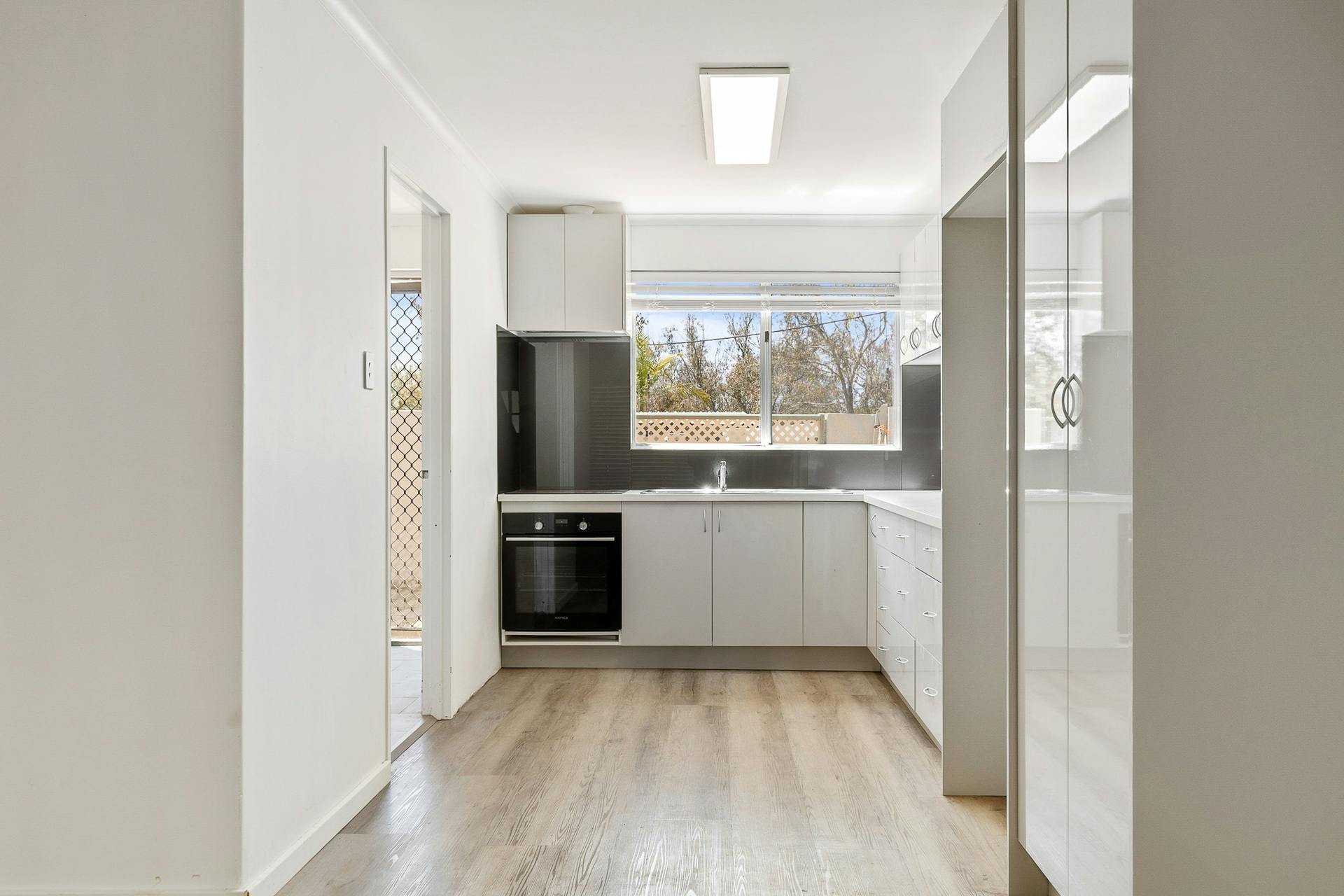 The modernised bathroom impresses with a large shower and floor-to-ceiling tiling, complementing the home's fresh, upgraded feel. The laundry has also been updated and includes an additional enclosed toilet-an invaluable bonus in unit living.