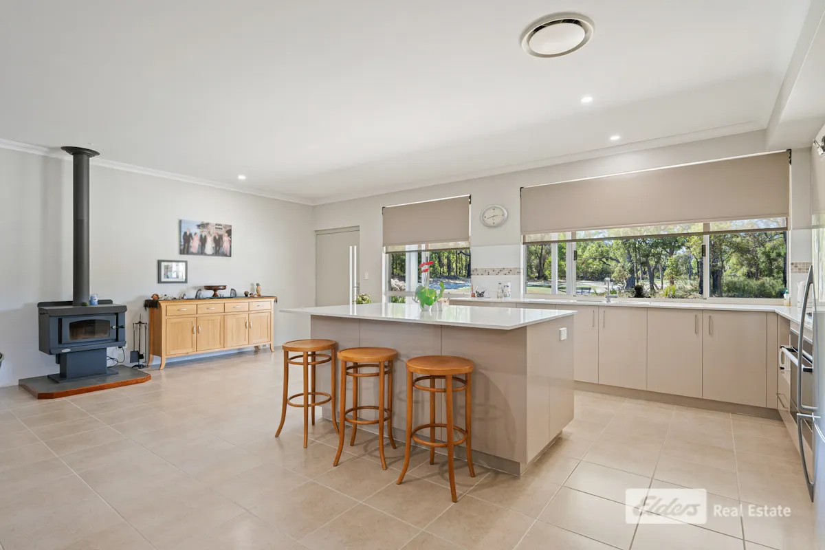 • Dining area includes a warming Jarrahdale wood stove