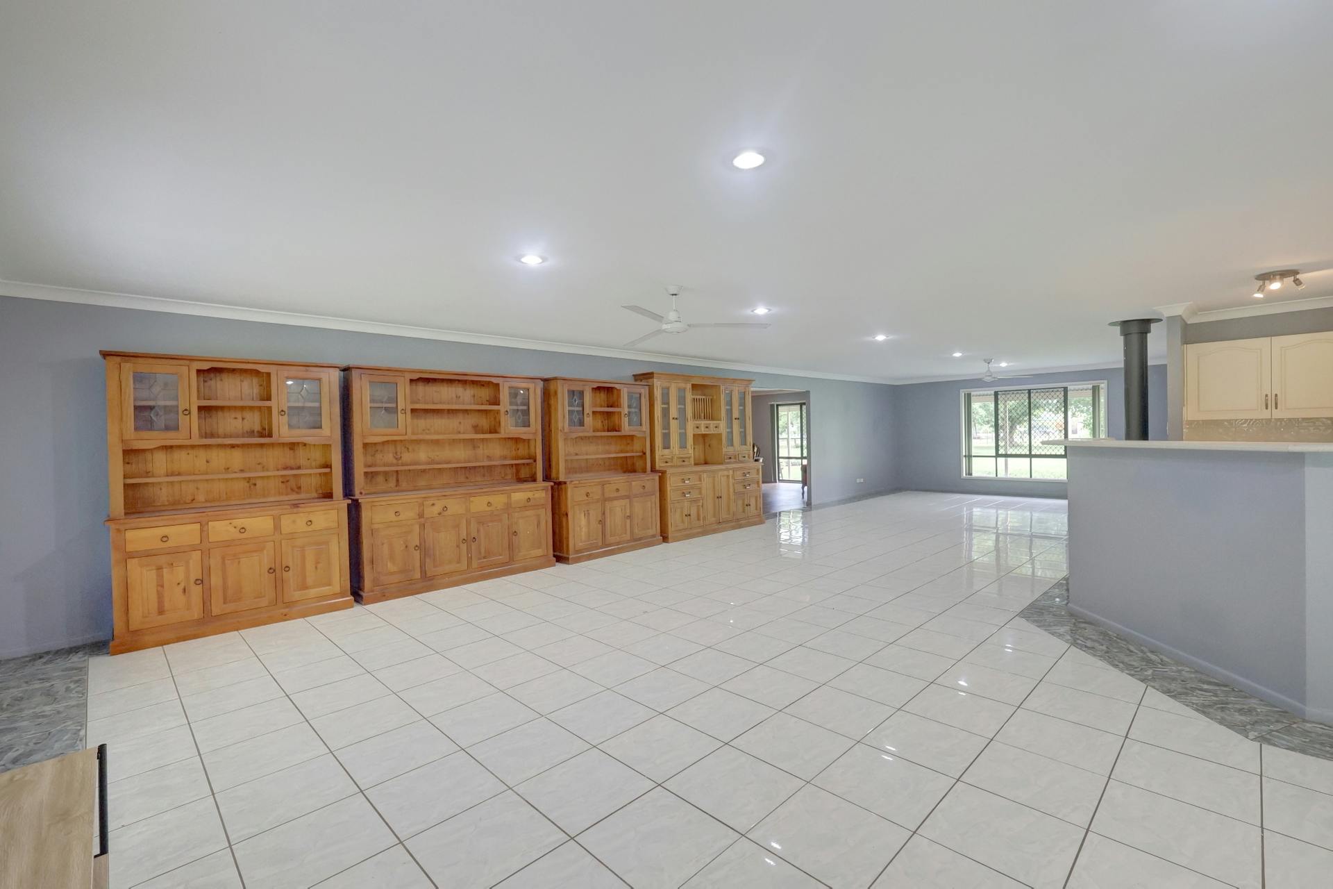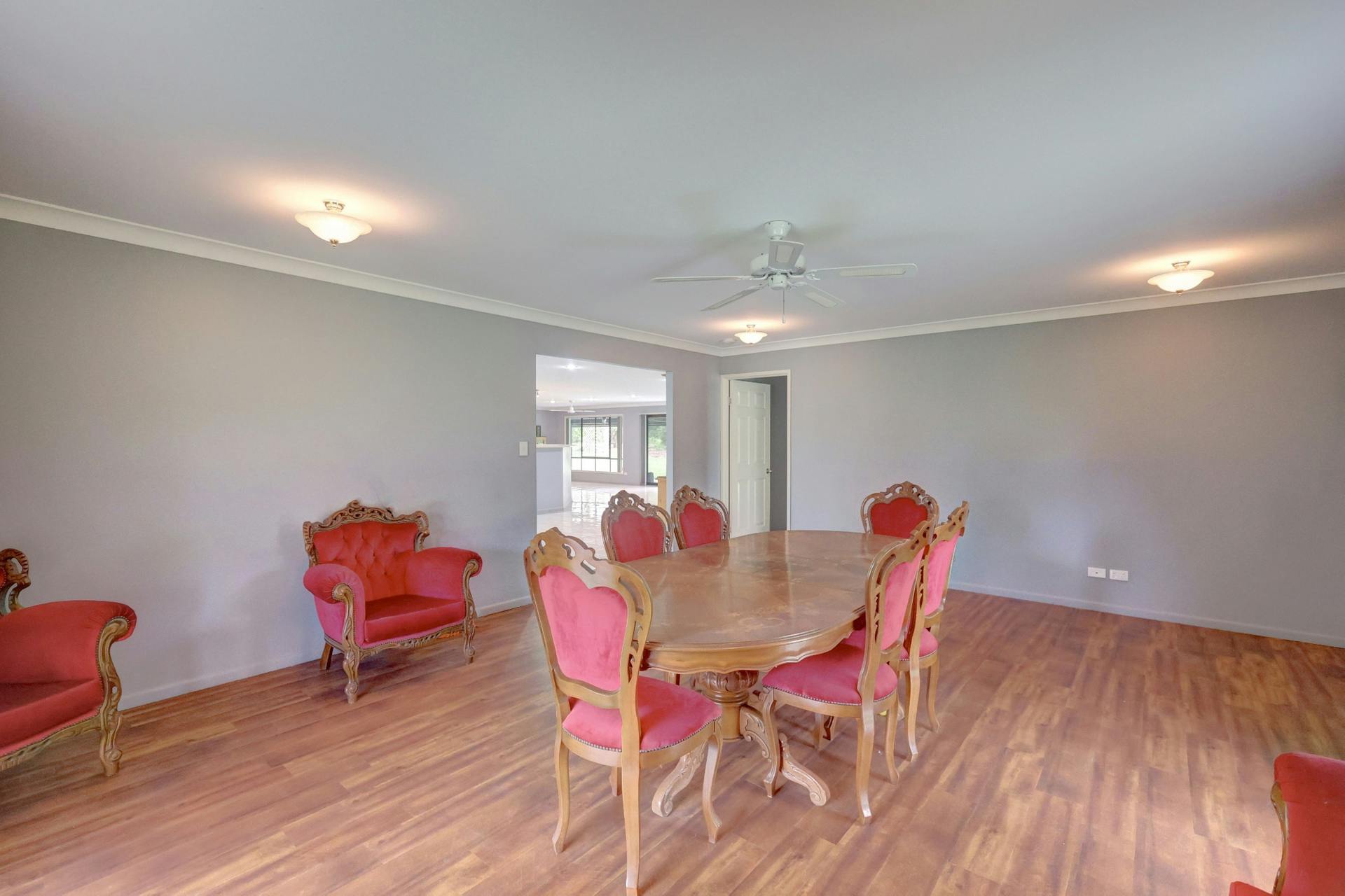 • HUGE formal dining/second living area, with ceiling fan