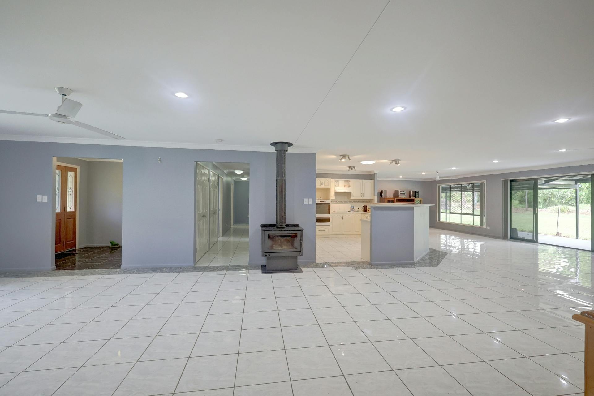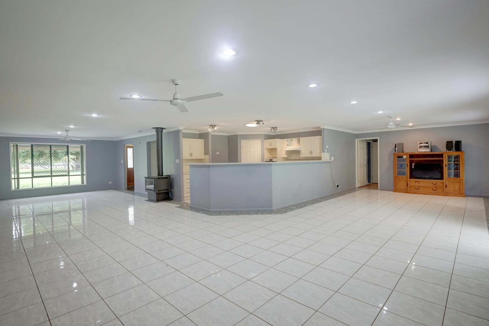 lounges and entertainment units, ceiling fans, wood heater and access to