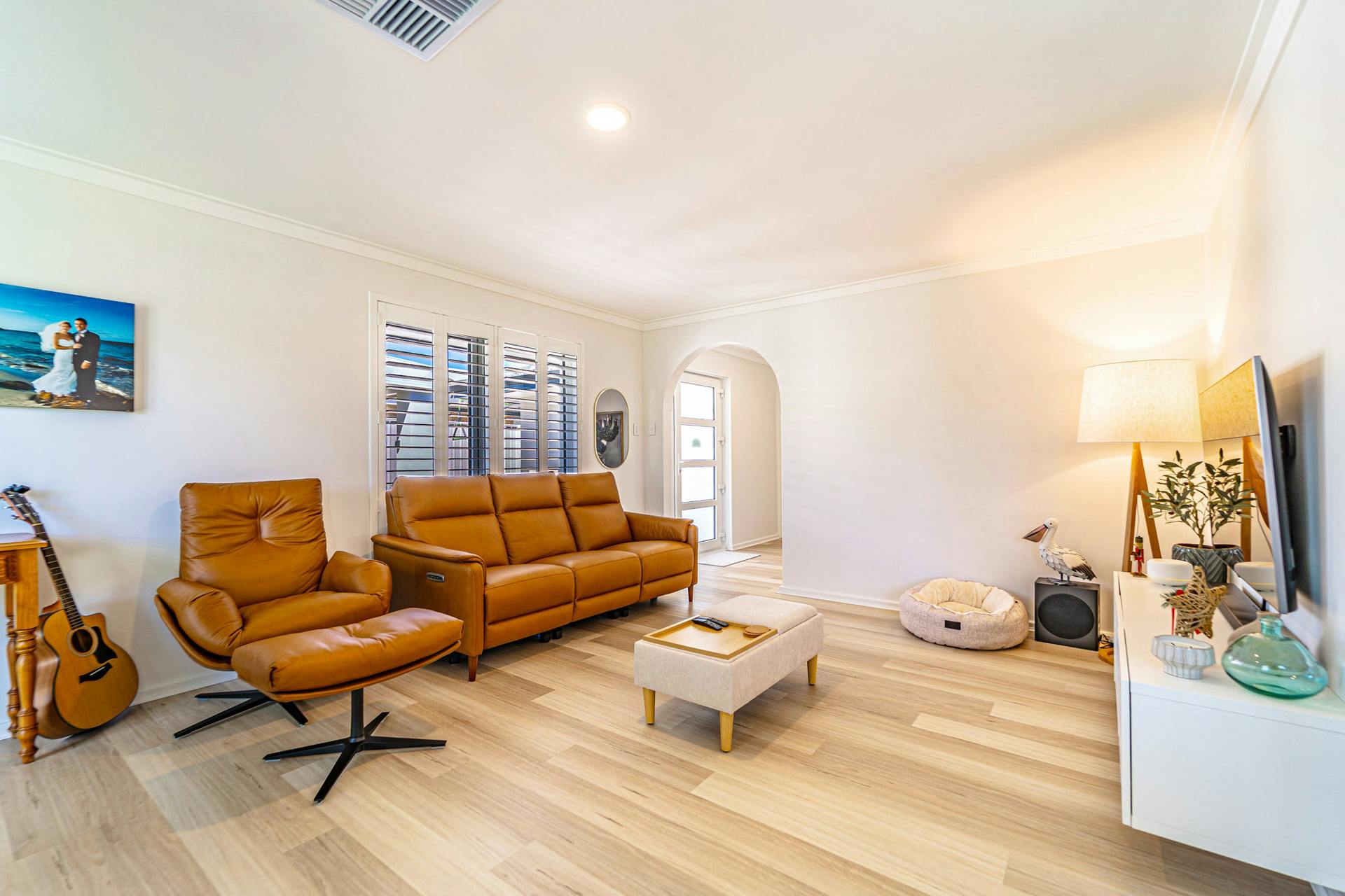 Additional features include ducted reverse cycle air-conditioning for year-round comfort, LED downlights throughout, plantain shutters, double glazed windows, security screens fitted to all external doors, and solar panels for energy savings.