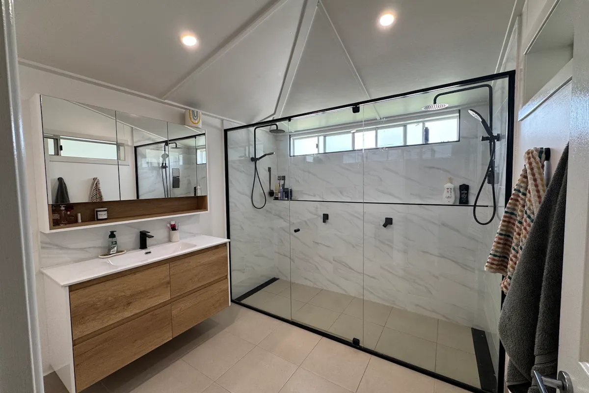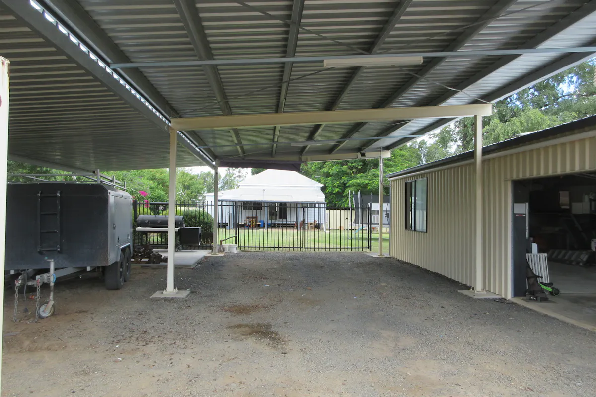 Entry off the bitumen rear lane via an automatic sliding gate is a large 13 x 6 meter lockup shed with an evaporative air conditioner and additional 13 x 10 meter roof structure providing ample parking for the equivalent of 6 cars, a large caravan or boat and all of the outdoor motorised toys you may have.