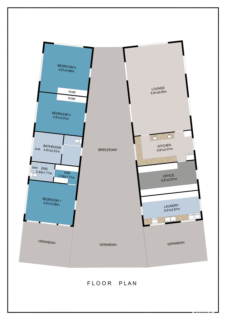 Polished concrete floors flow throughout the home, complemented by split-system air-conditioning in every room. The master suite features a private ensuite and walk-in robe, while the additional bedrooms each enjoy direct access to the breezeway. A dedicated home office adds practicality for modern living.