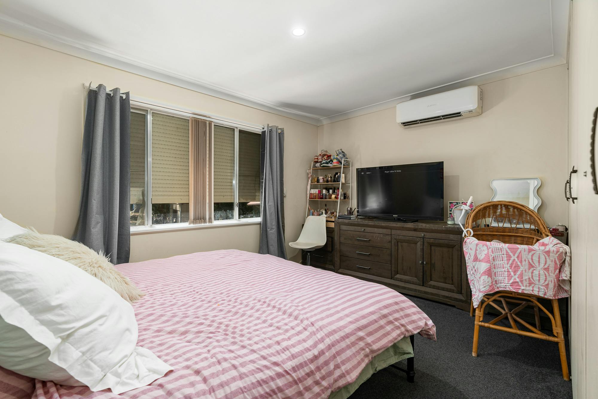 Offering generous living spaces, including a front living room and a separate rear living or dining area, ideal for small families or those who enjoy entertaining. Year-round comfort is assured with a box reverse cycle air conditioner and natural gas heating points. The centrally located open plan kitchen is practical and functional, complete with a freestanding Westinghouse electric stove.