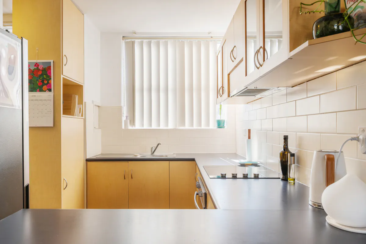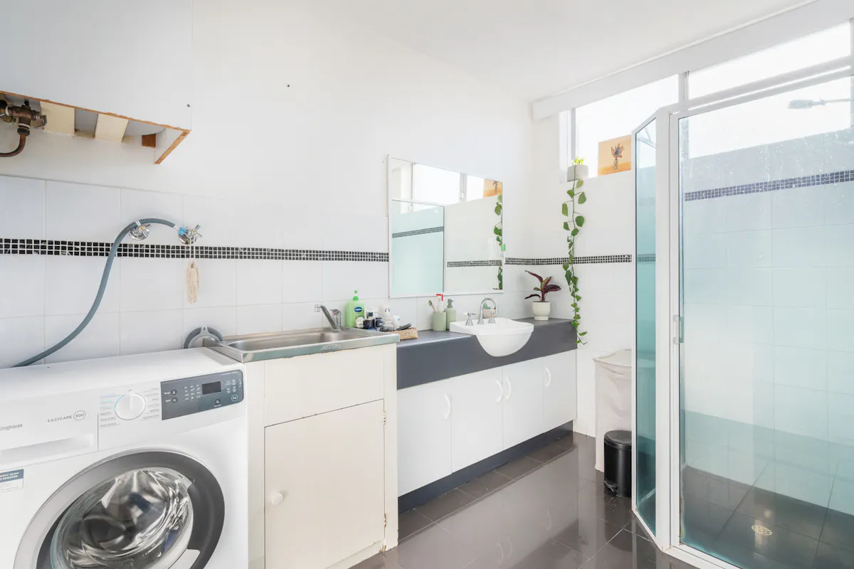Both bedrooms are well-sized and fitted with built-in cupboards, while the bathroom cleverly incorporates the laundry for easy everyday living.