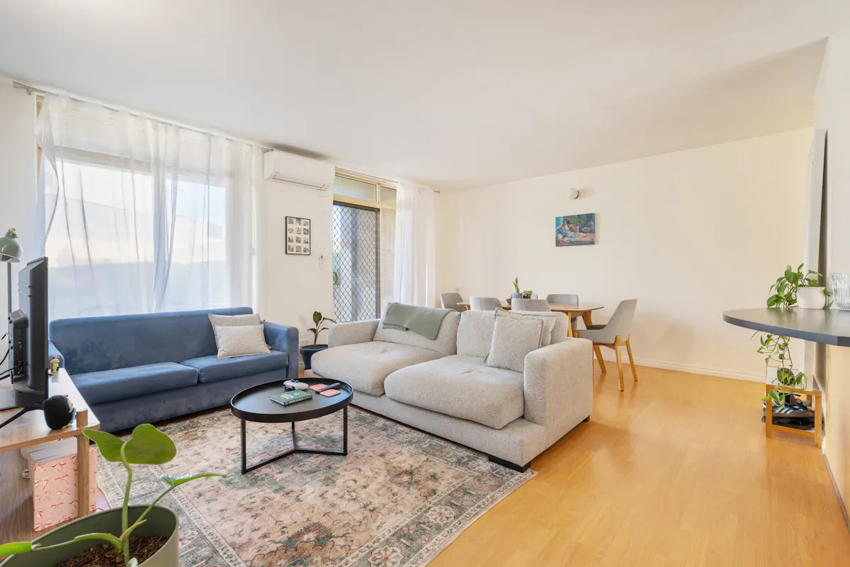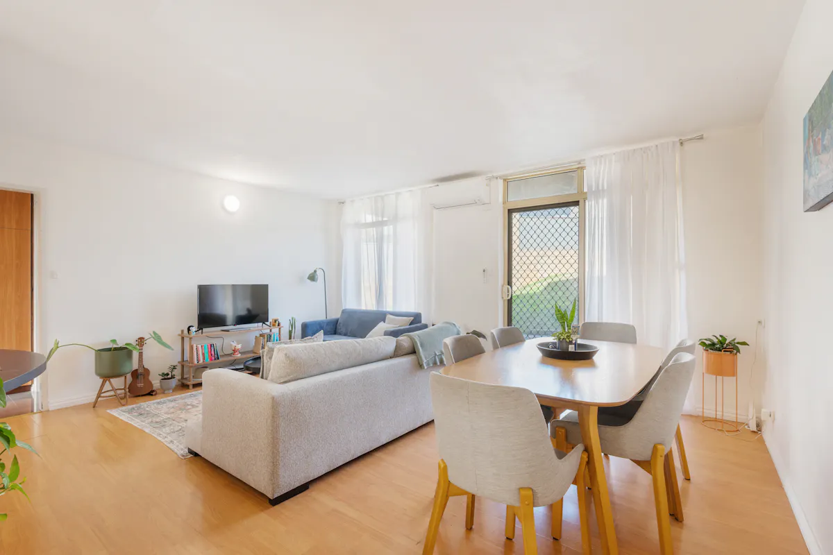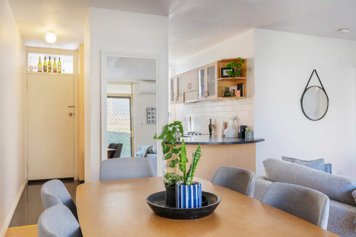 Inside, the apartment offers a light and comfortable open-plan living space, complete with reverse-cycle air conditioning to keep you comfortable in every season. The practical kitchen flows easily into the dining and lounge area, creating a relaxed space to unwind after a day by the coast.