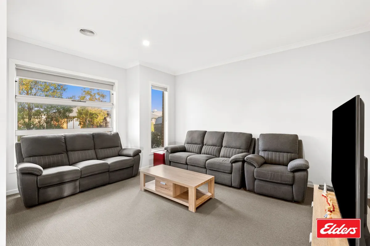 Elders Real Estate Wyndham City presents this well-designed family home positioned in the growing Cornerstone Estate, Werribee. Set on approximately 400m² with an east-facing orientation, this single-level residence of around 25.3 squares offers a practical layout suited to families, first-home buyers and investors.The home includes four bedrooms, with the master positioned at the front and fitted with a walk-in robe and private ensuite. The remaining three bedrooms are equipped with built-in robes and serviced by a central bathroom and separate toilet. Multiple living areas include a formal living room at the front, an open-plan family and meals zone, and an additional rear lounge providing flexibility for everyday living.