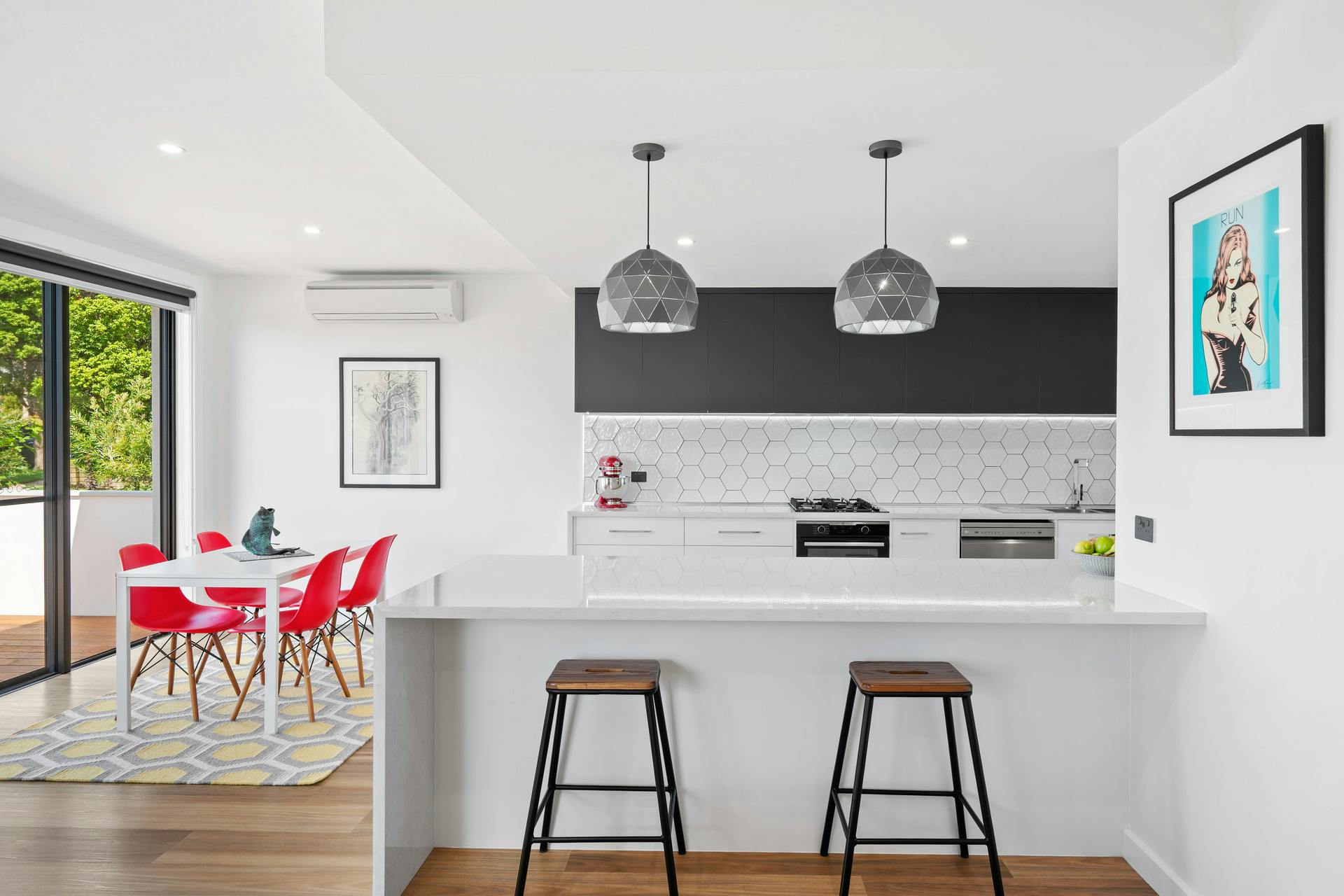 • Open plan kitchen, living and dining area