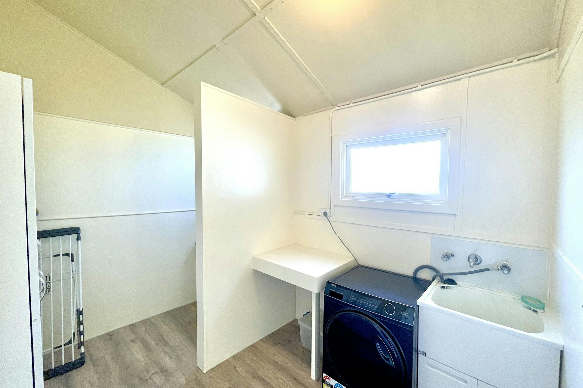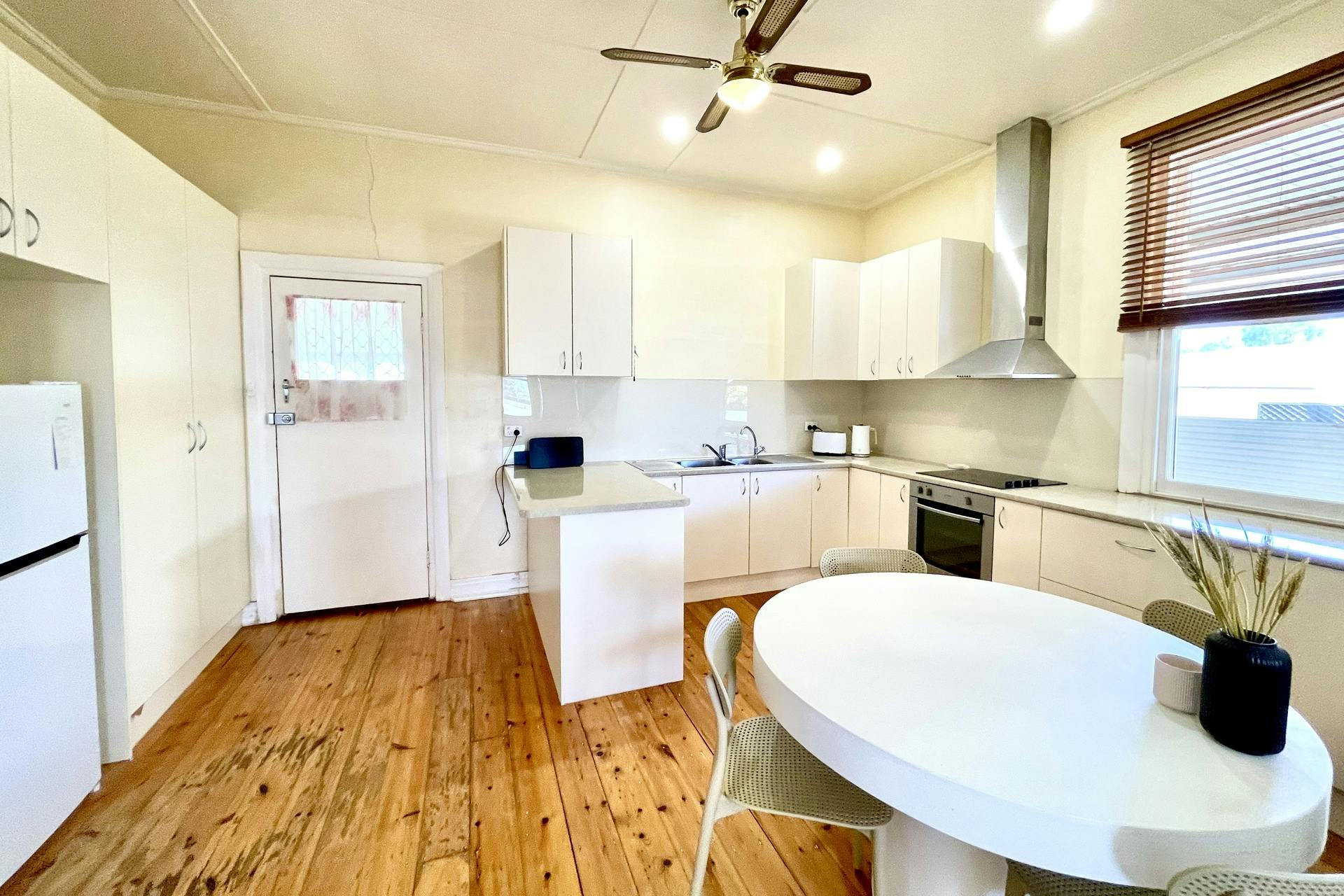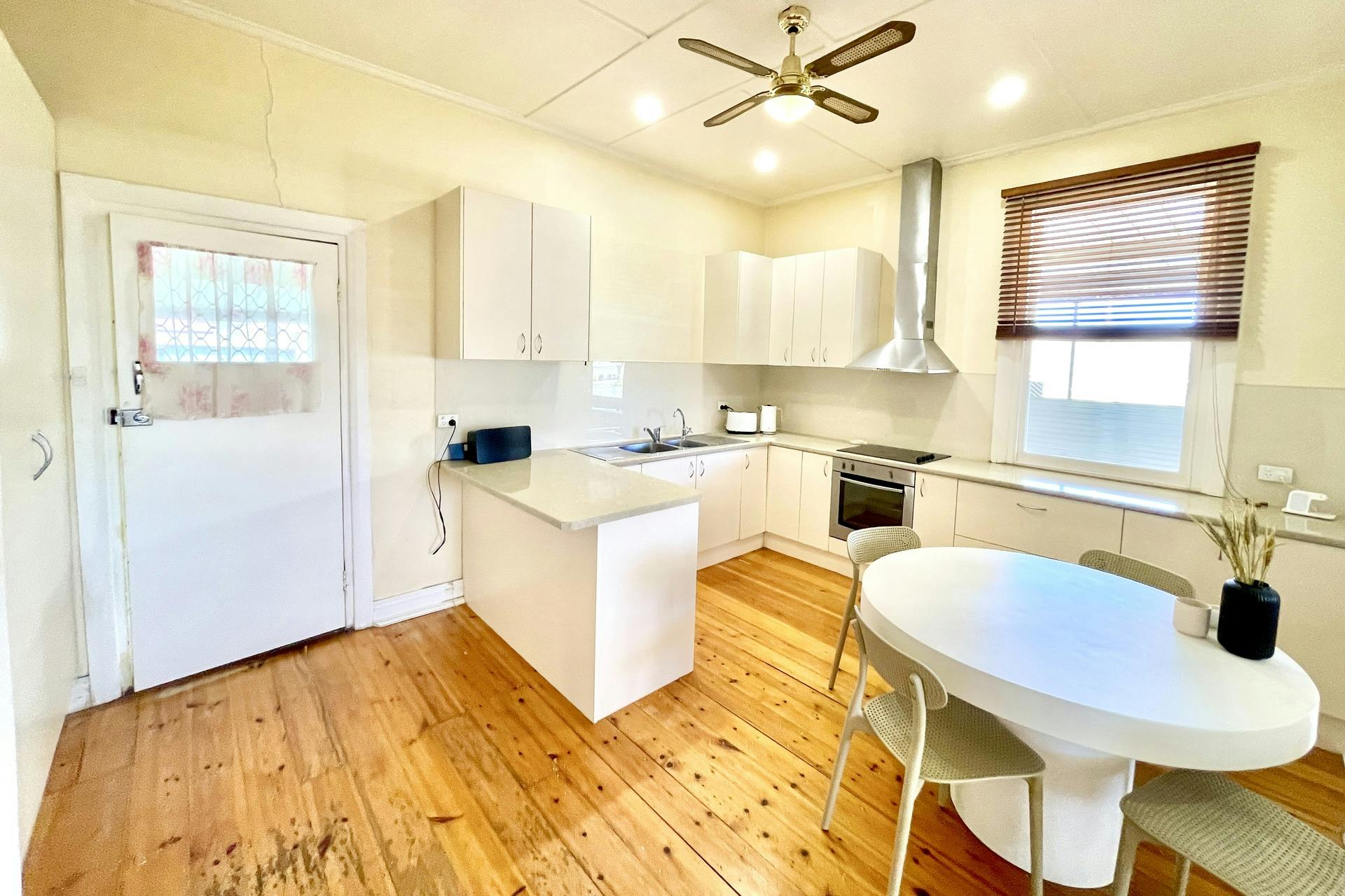 The open-plan lounge, dining, and kitchen area is the heart of the home – complete with a large reverse-cycle air conditioner and ceiling fans for year-round comfort. The modernised kitchen boasts wide benches, ample cabinetry, a two-door pantry, large fridge alcove, electric oven and cooktop, rangehood, and a 1.5 stainless-steel sink.