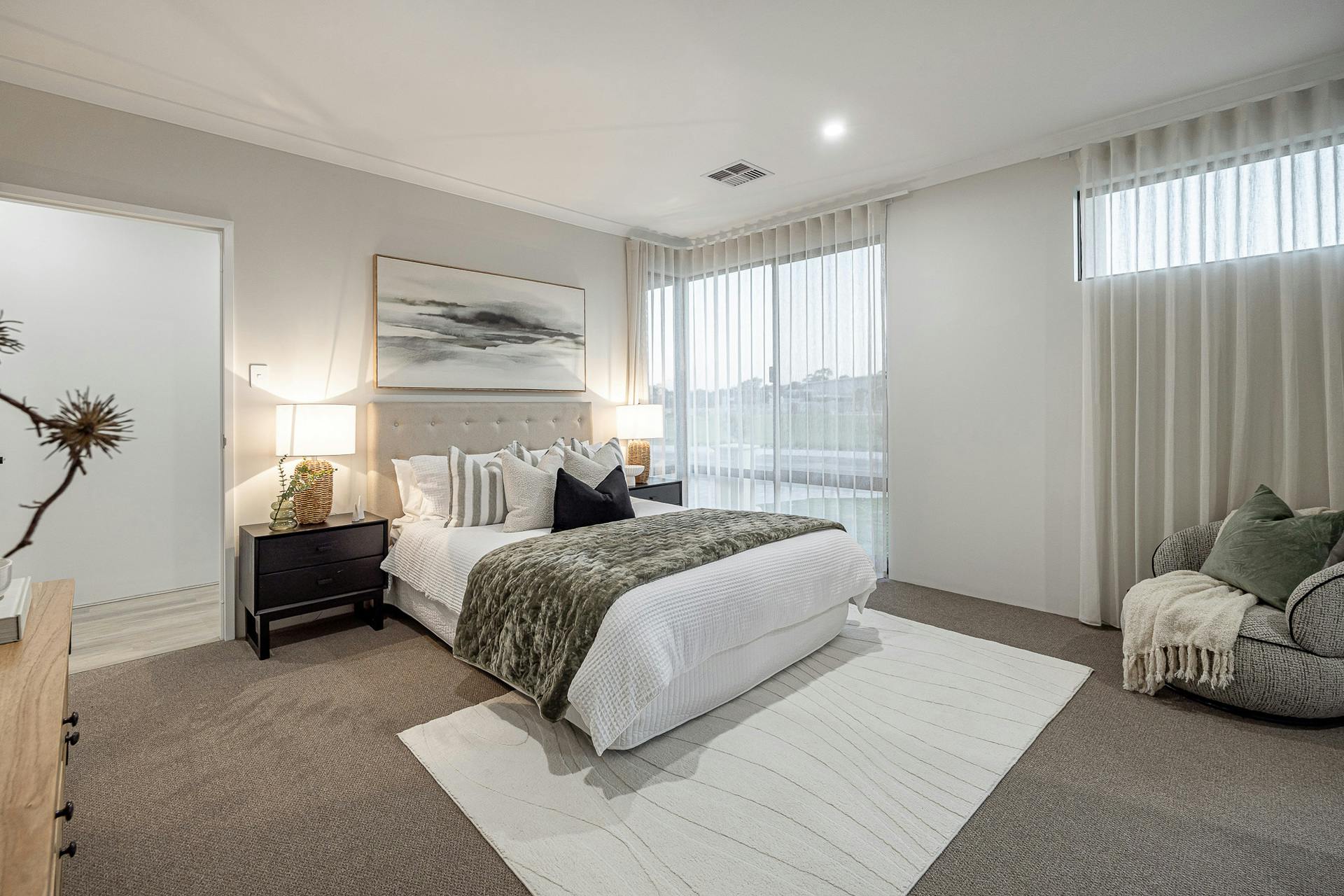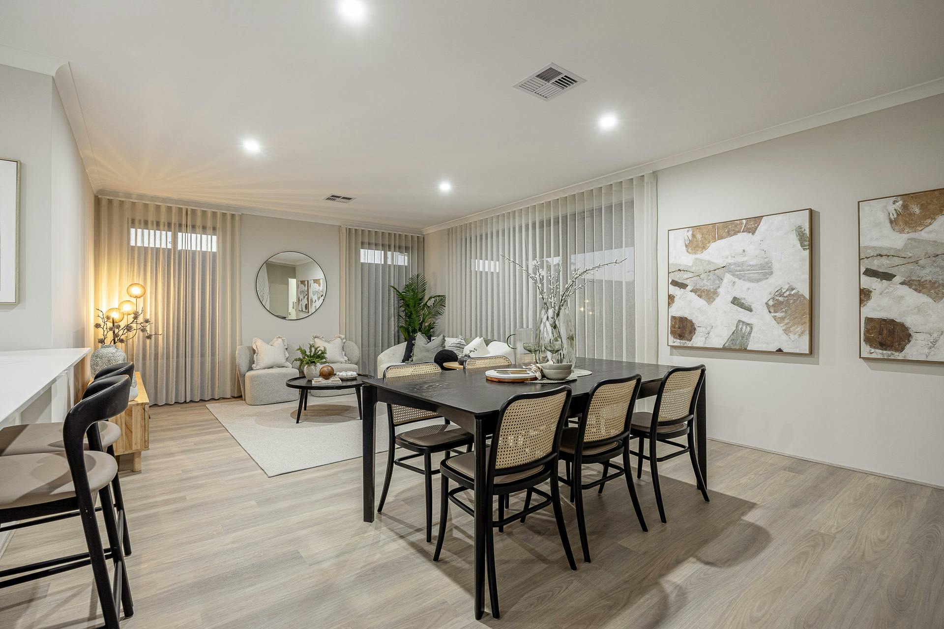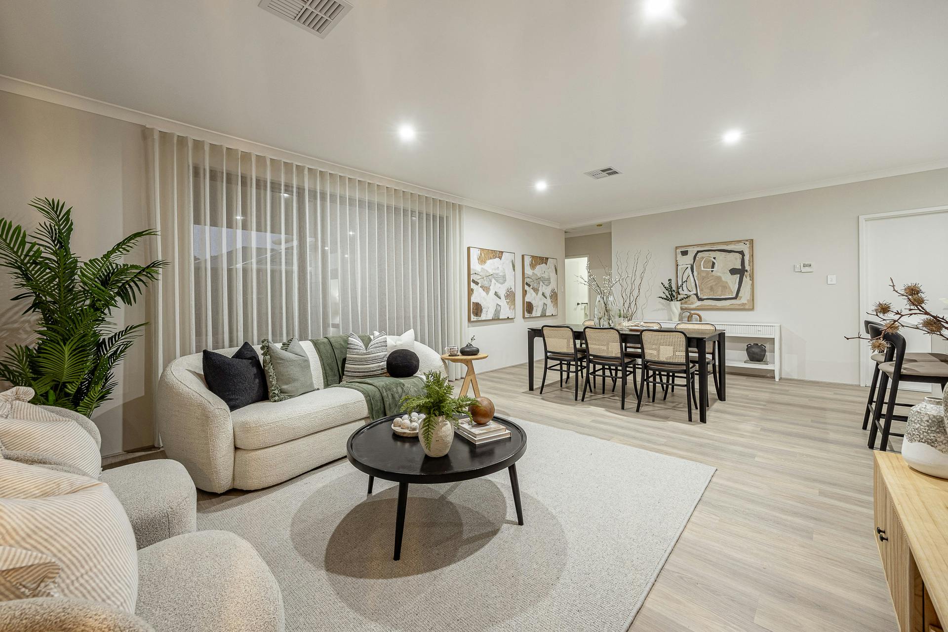 - Open plan living and dining area, with quality window coverings, a bright and spacious feel and sliding door access to the alfresco