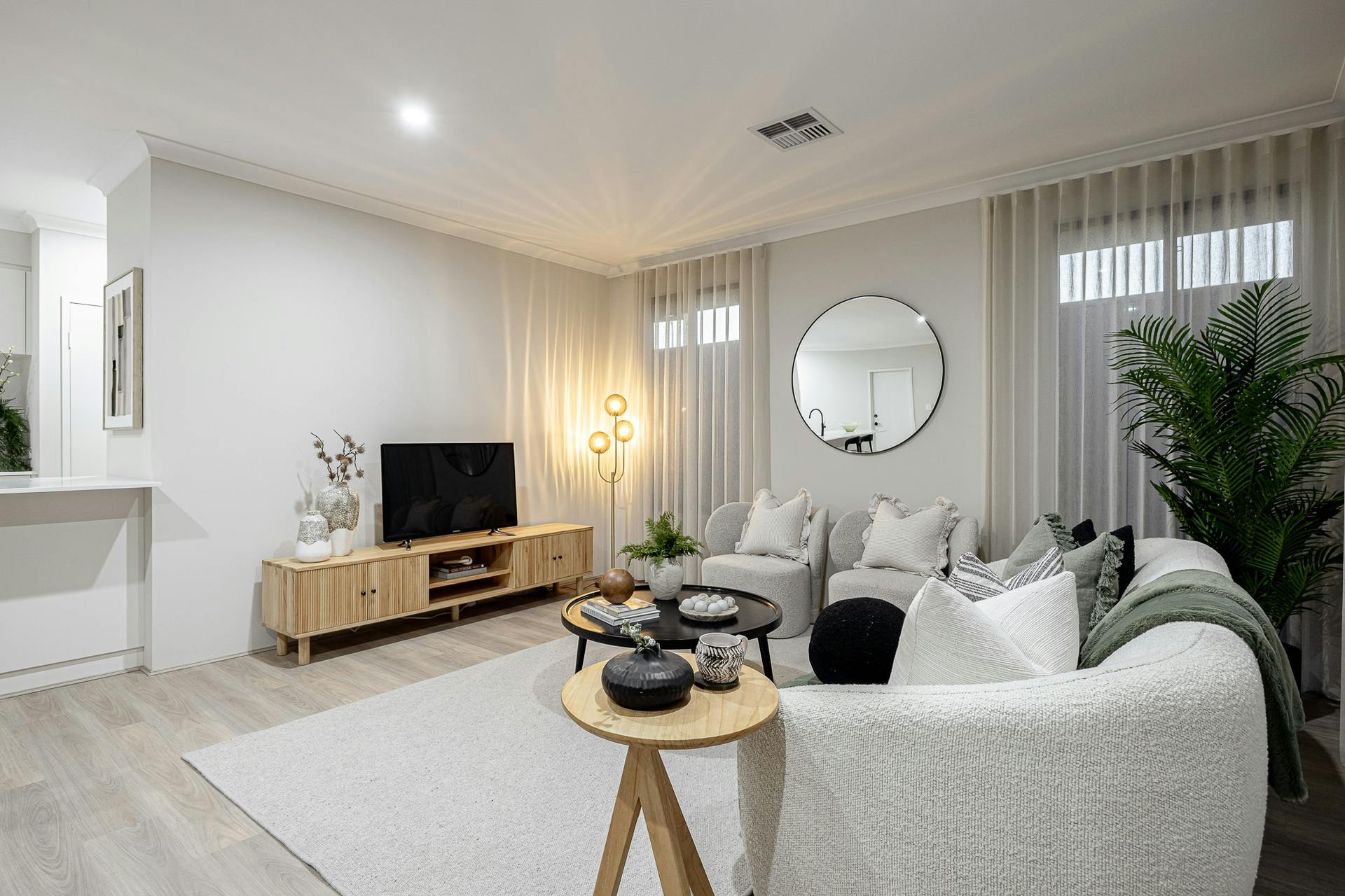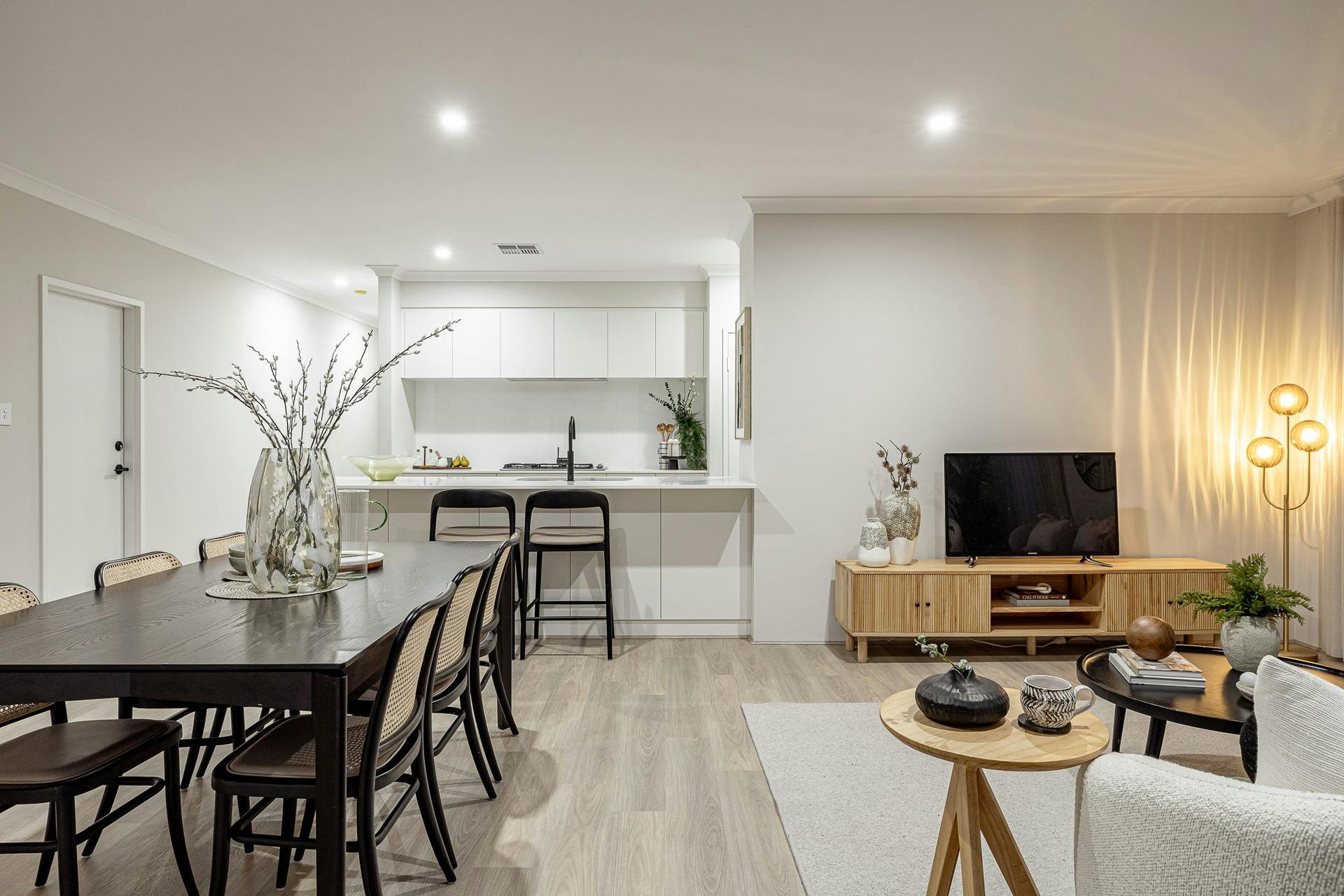 - Hybrid flooring to the main living areas and soft carpet to the bedrooms