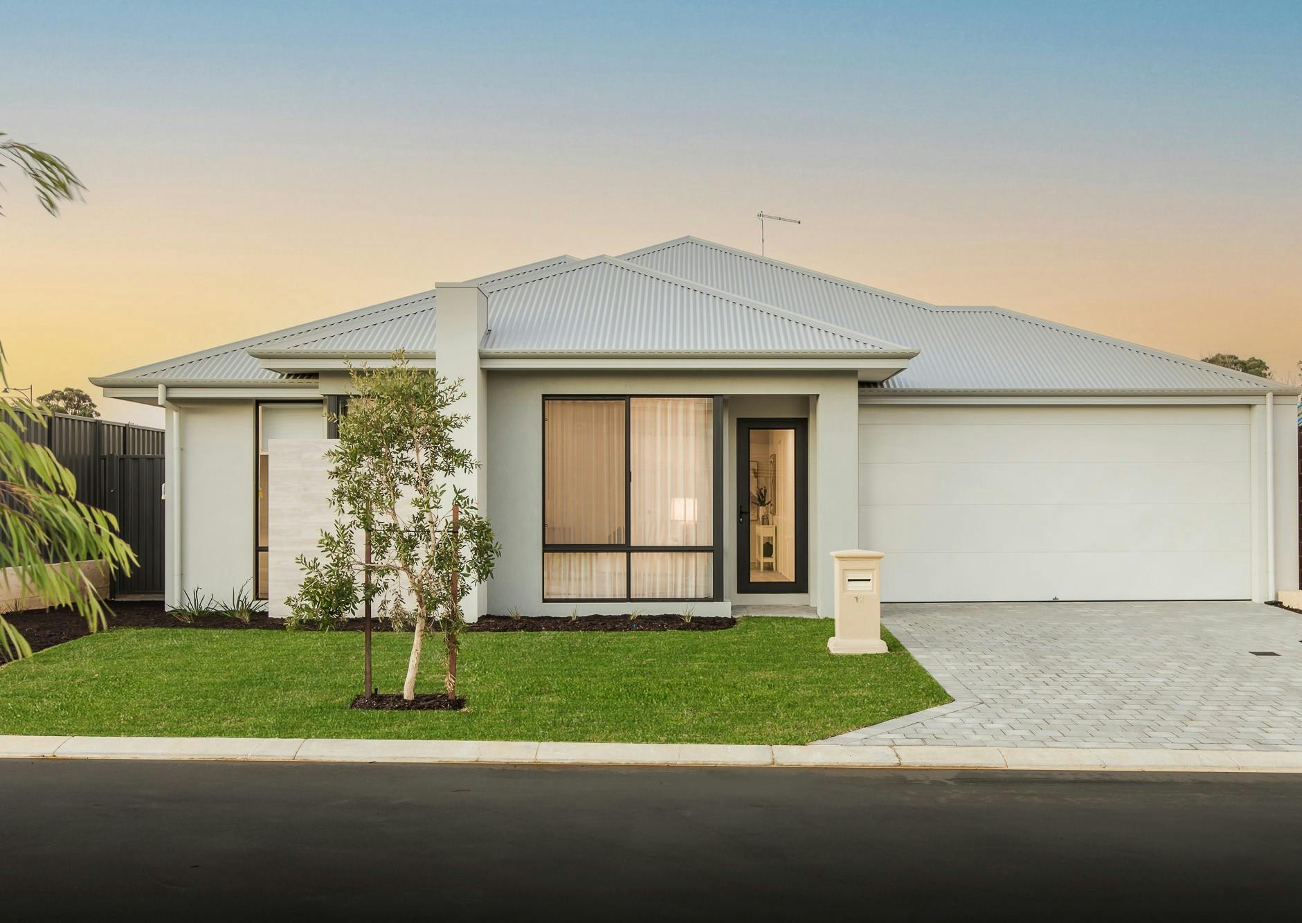 - Contemporary street appeal with a lush green lawn before the home