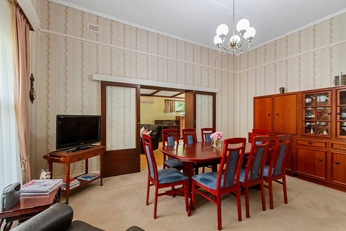 A full size family dining room link the kitchen and family living - entertaining areas. A slow combustion heater provides warmth and ambiance with split system airconditioning flowing through from the adjoining family area to provide all year round temperature control.
