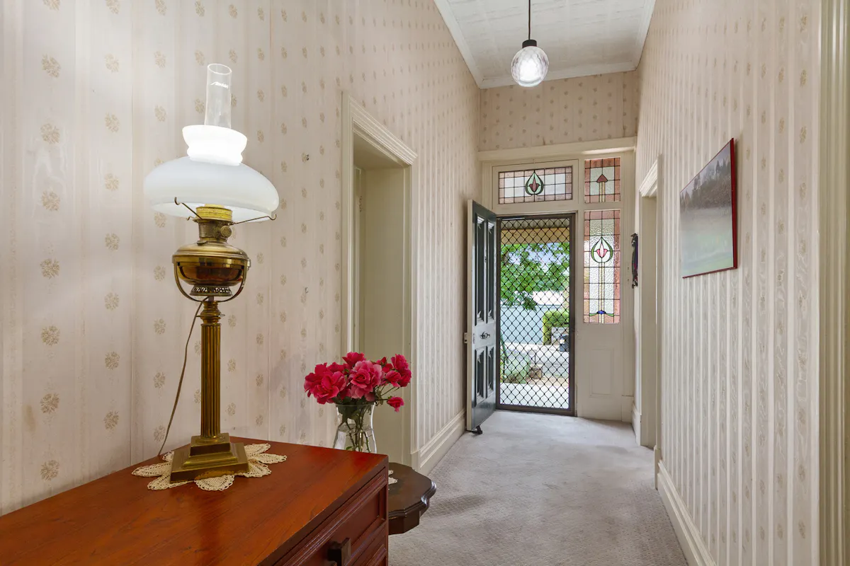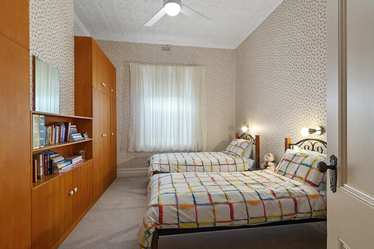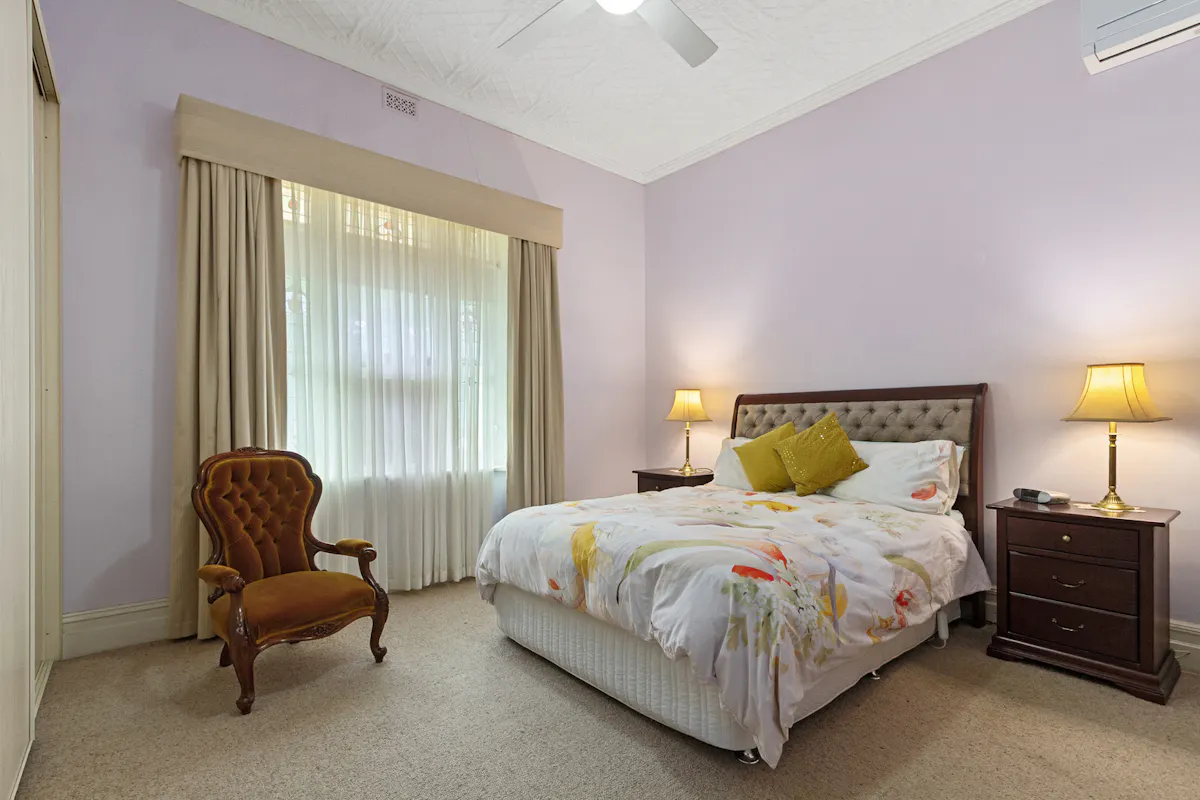Enter the central hallway and the years disappear, the soaring ceilings with feature pressed metal ceilings lead the way into the 3 main bedrooms, the 4th currently utilised as an office. All rooms feature ornate metal ceilings and ceiling fans, with two having original fireplaces *** with the master also featuring split system airconditioning.
