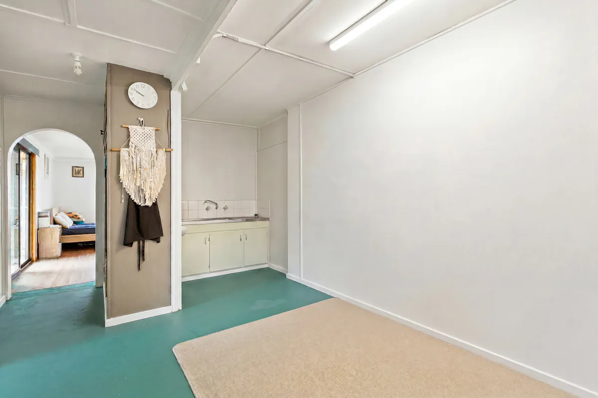 Toward the rear, a second self-contained area includes its own living space, kitchen, bathroom, and laundry - perfect for independent living arrangements or additional rental income.