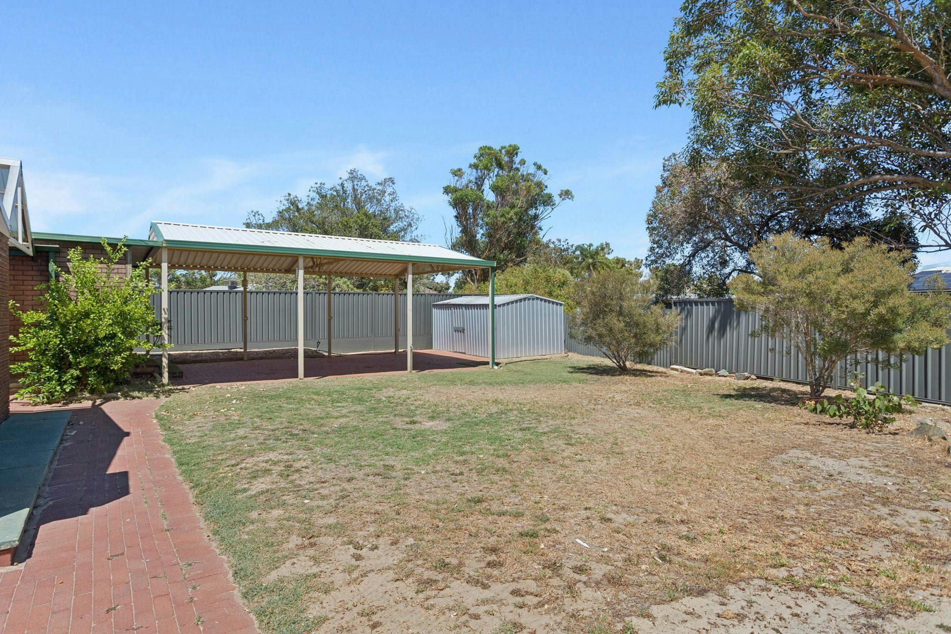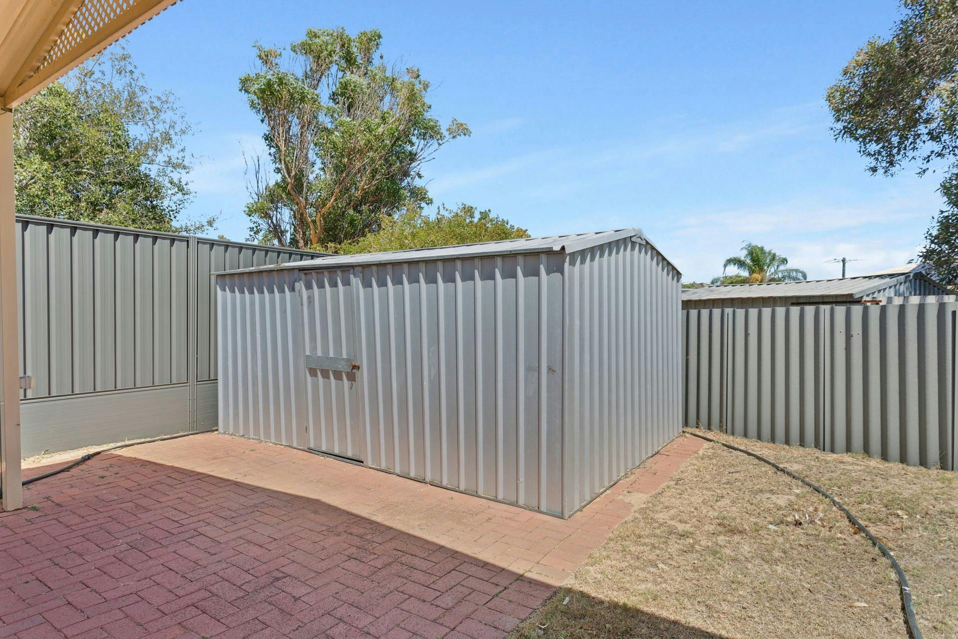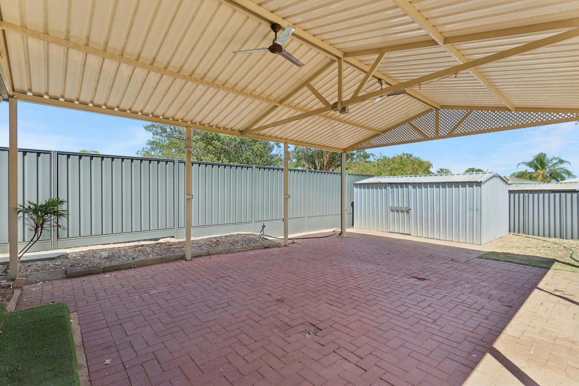 - Vast gabled roof alfresco within the backyard, with paved flooring, two exterior ceiling fans and plenty of space to entertain or relax with friends and family