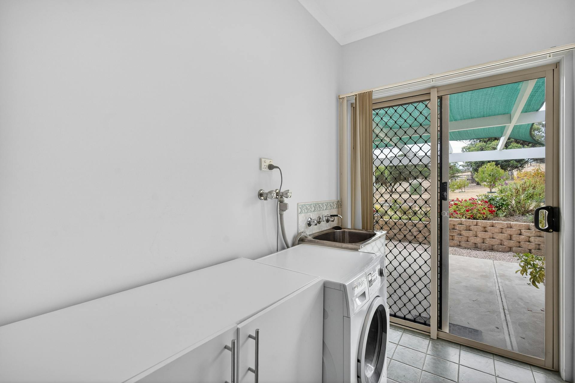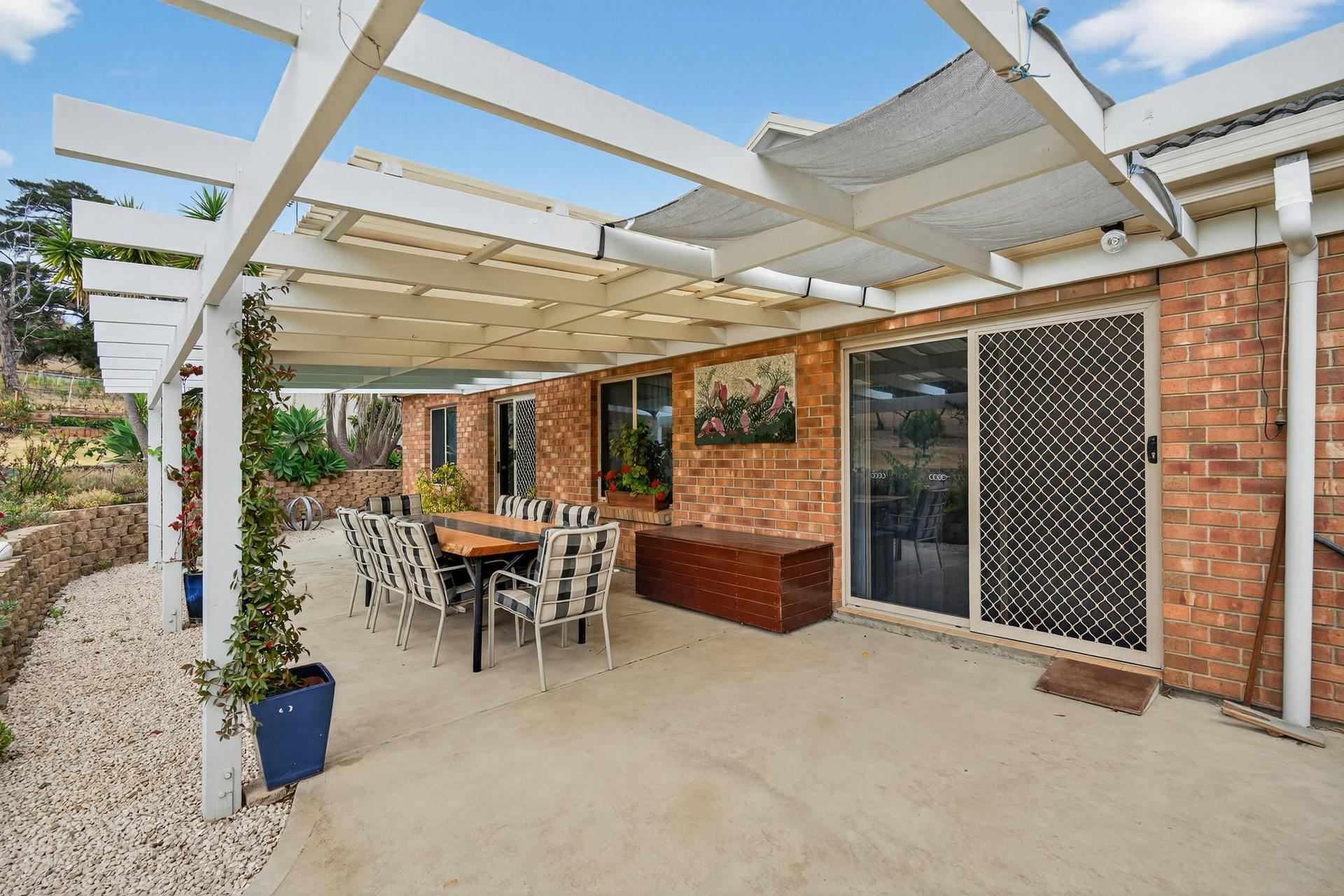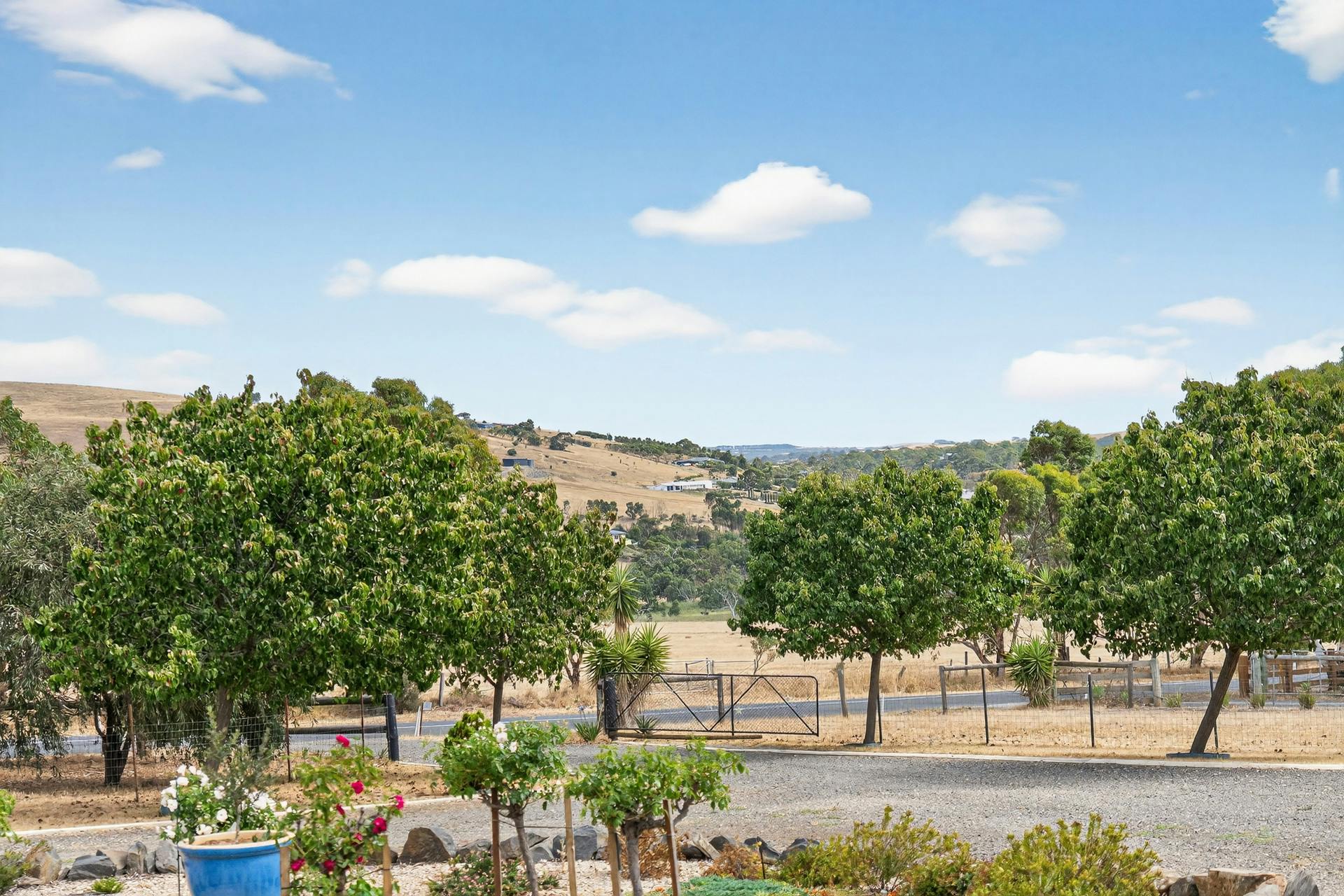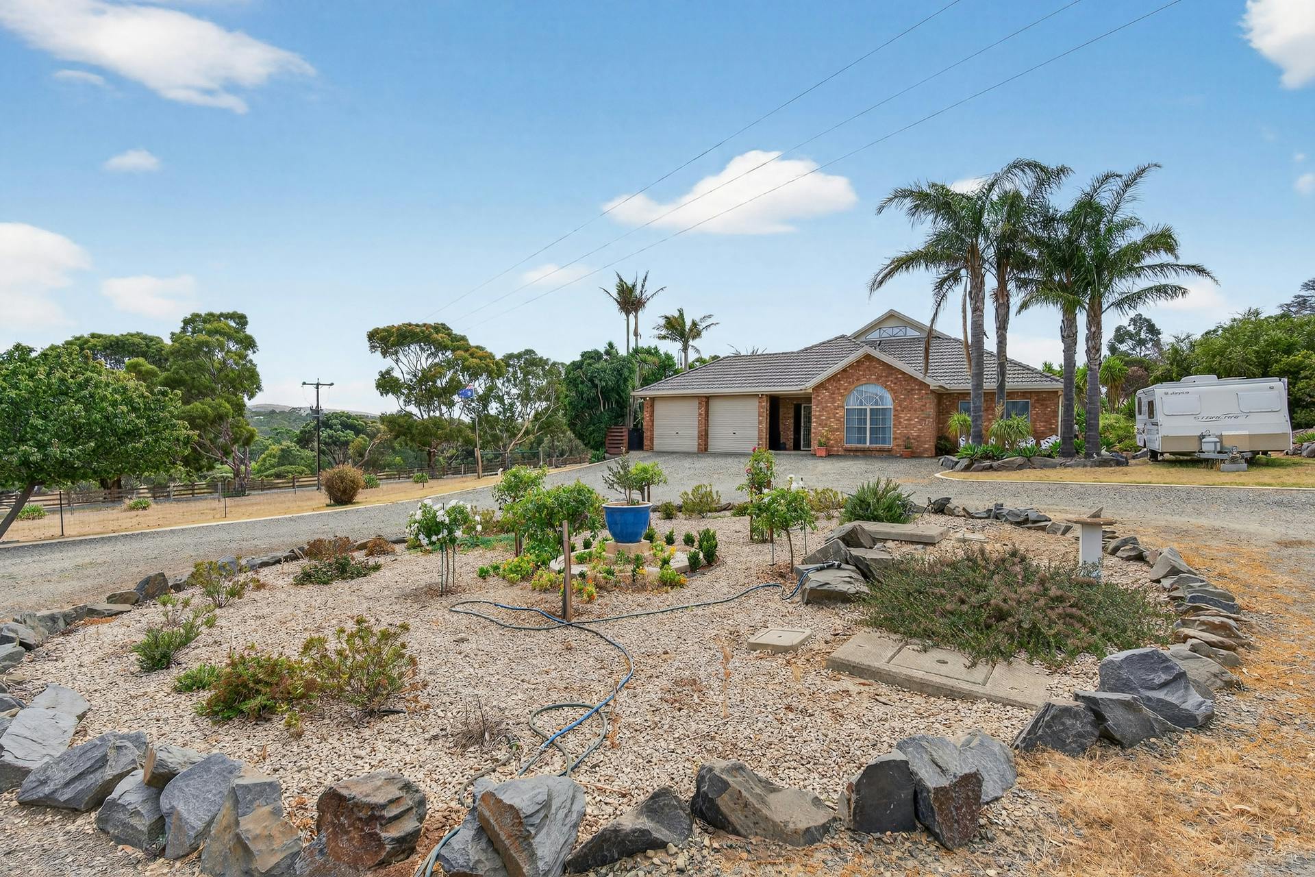 An easily manageable gently undulating 3 acre (approx.) property that has a bitumen road frontage and benefits from being closely located to the Victor Harbor Golf Course, Investigator College and Town Centre facilities.As you pass down the tree lined driveway you are met with a practical circular drive-around that provides plenty of parking options and leads to an immaculate family or retirement home. There is a beautiful seating area under the palms, where you can sit and admire your beautiful front yard and the rolling hills in the distance.