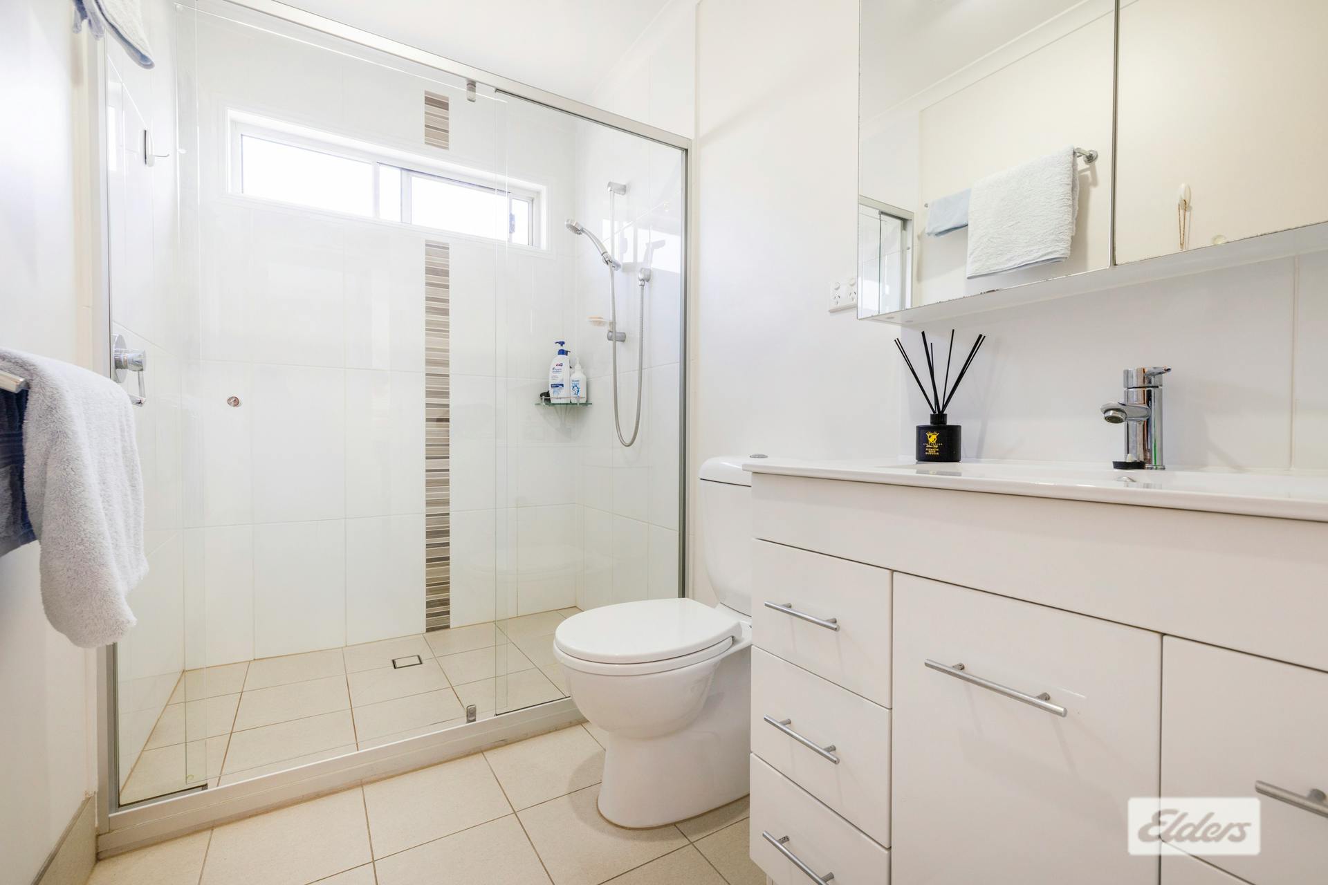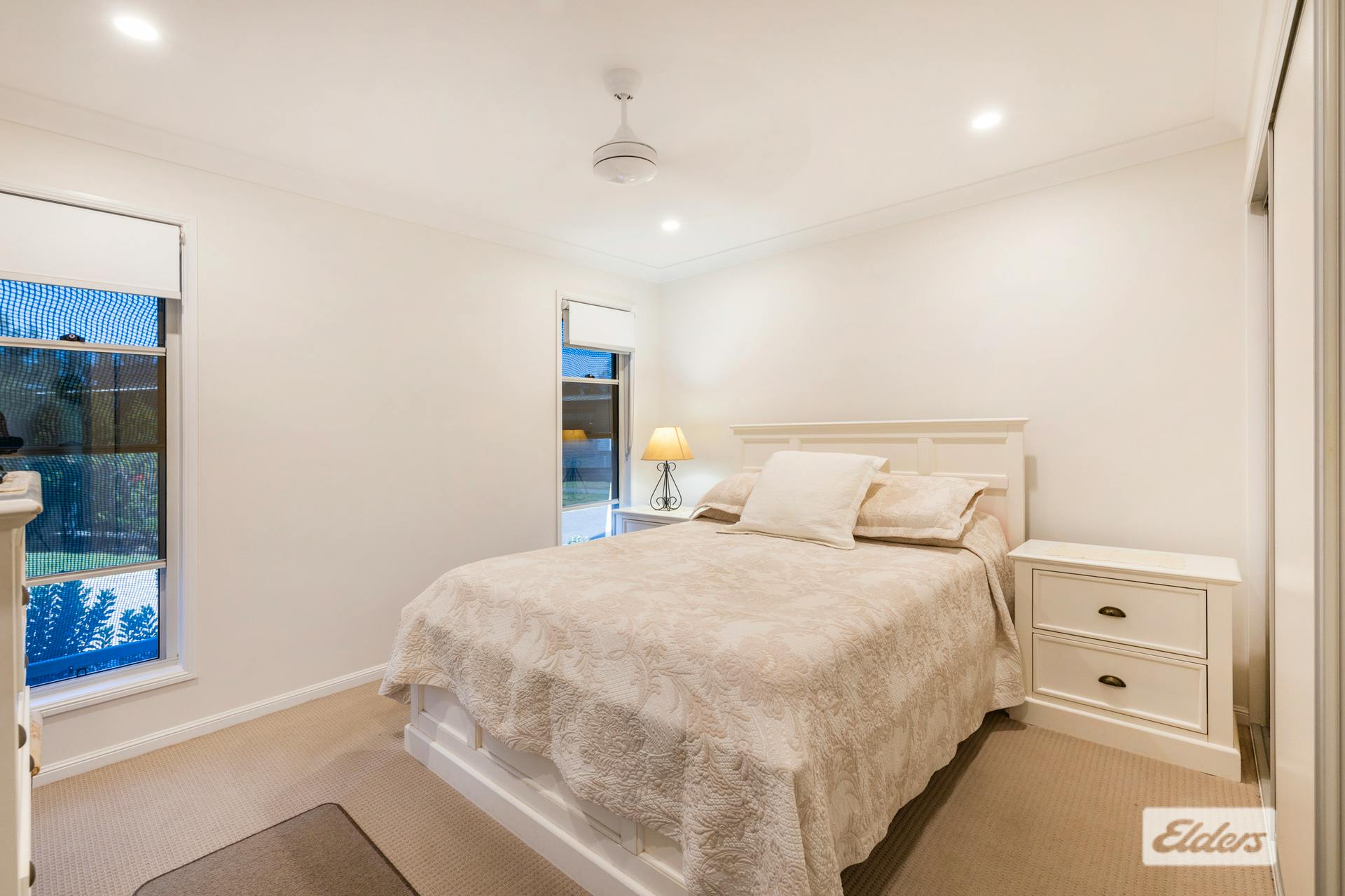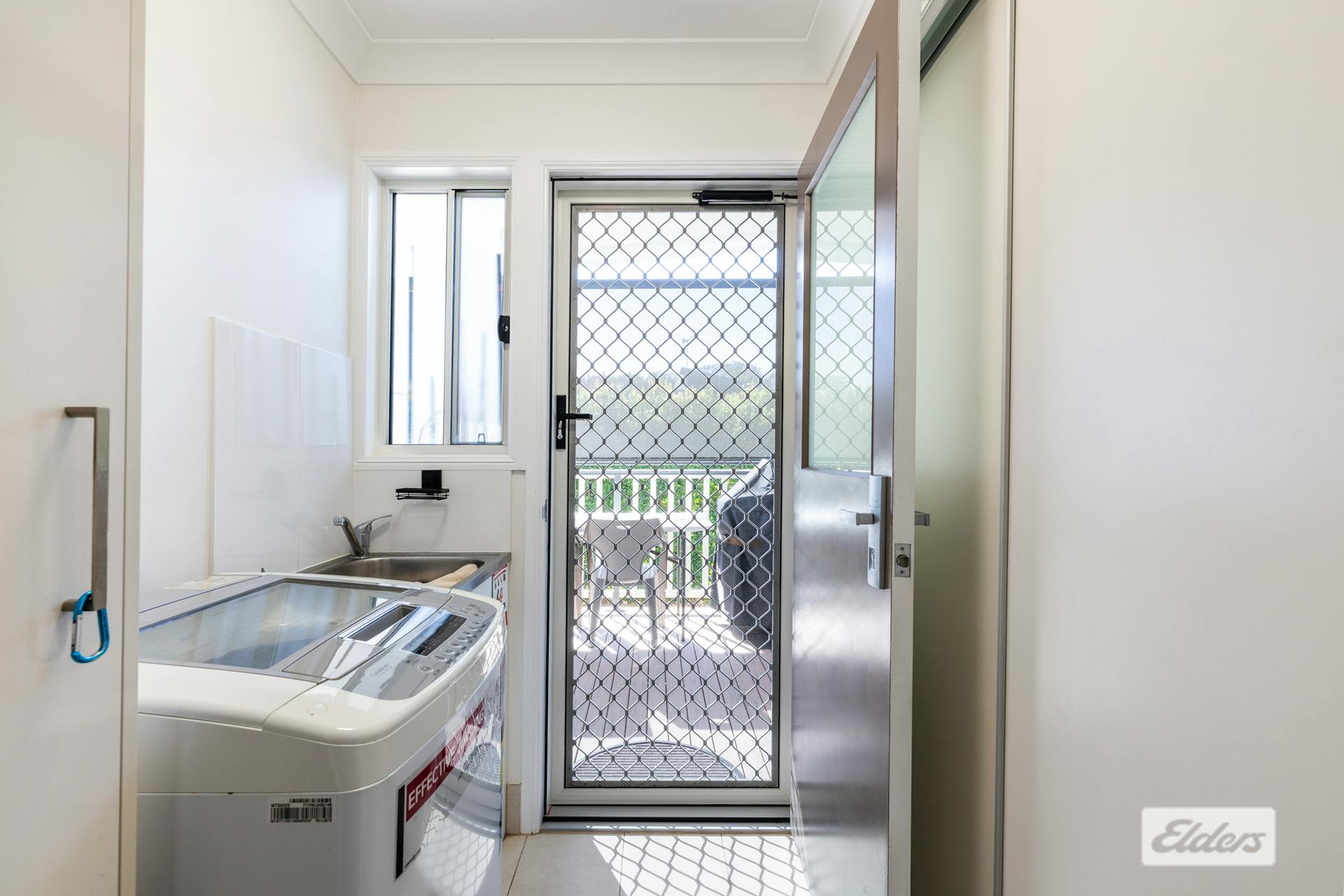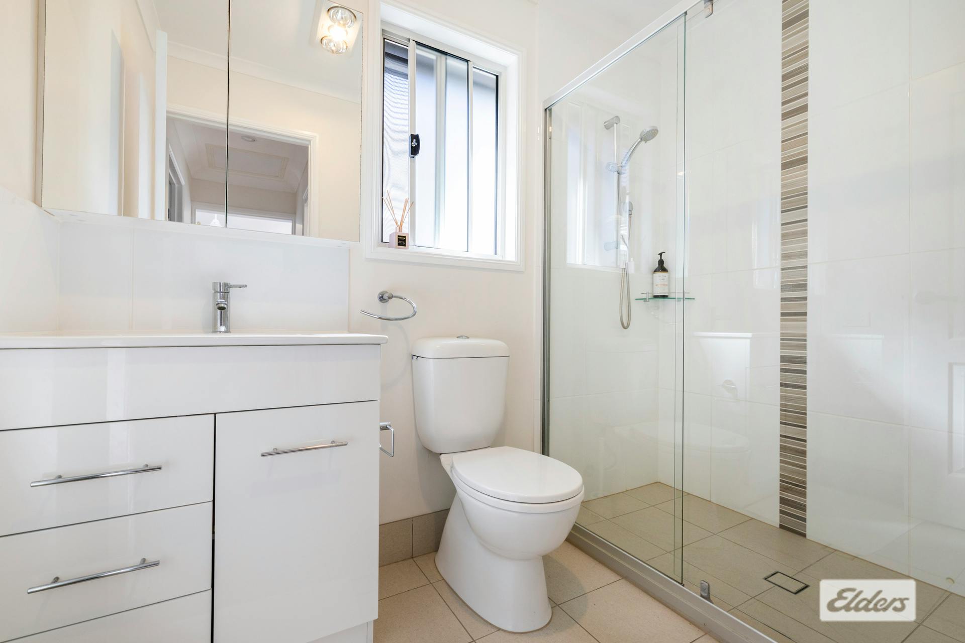 The contemporary kitchen features Caesarstone benchtops, stainless steel appliances, dishwasher and gas cooking, flowing seamlessly into the open living and dining space. Split-system air conditioning, ceiling fans and LED lighting provide year-round comfort.