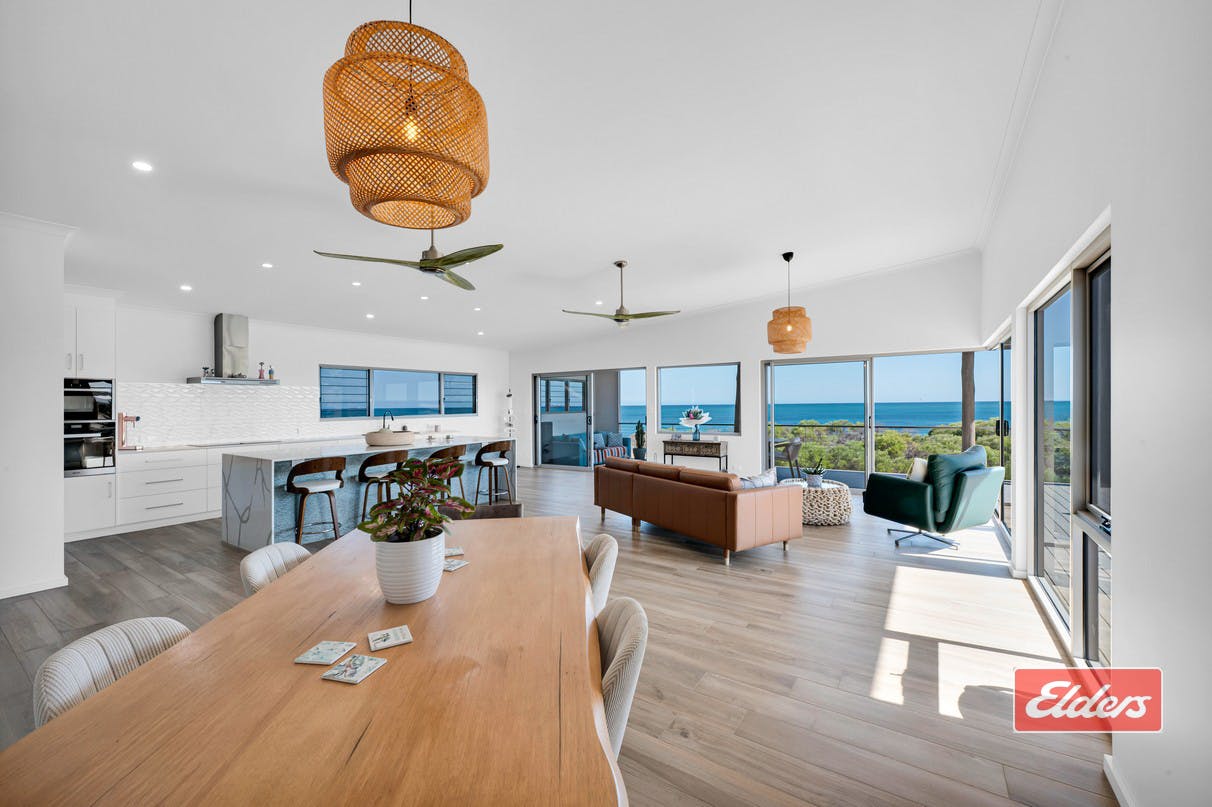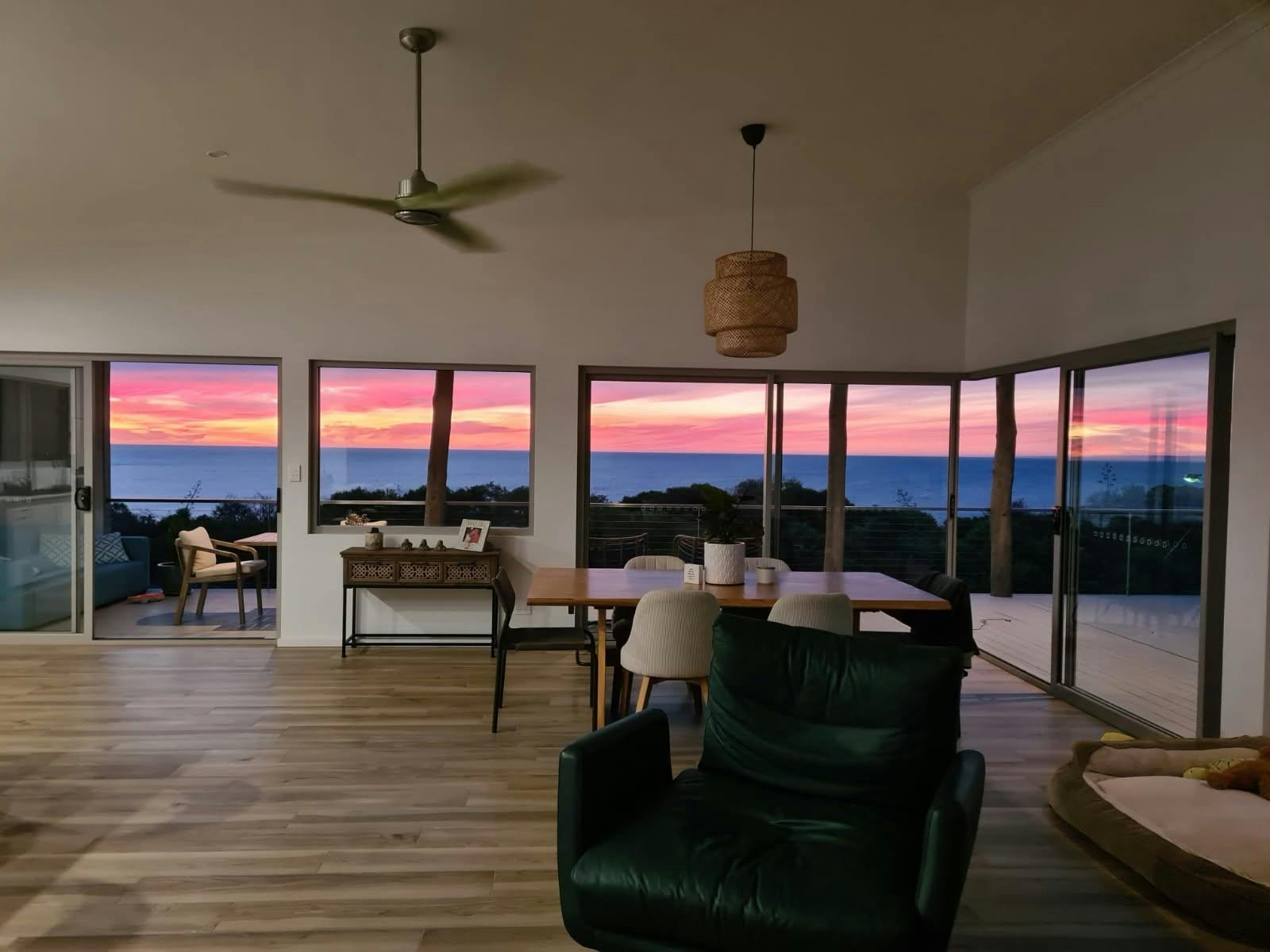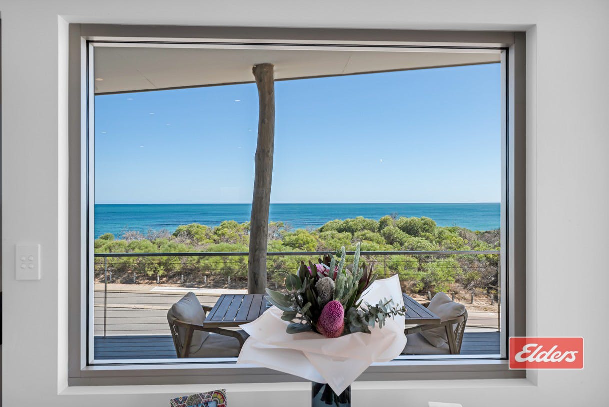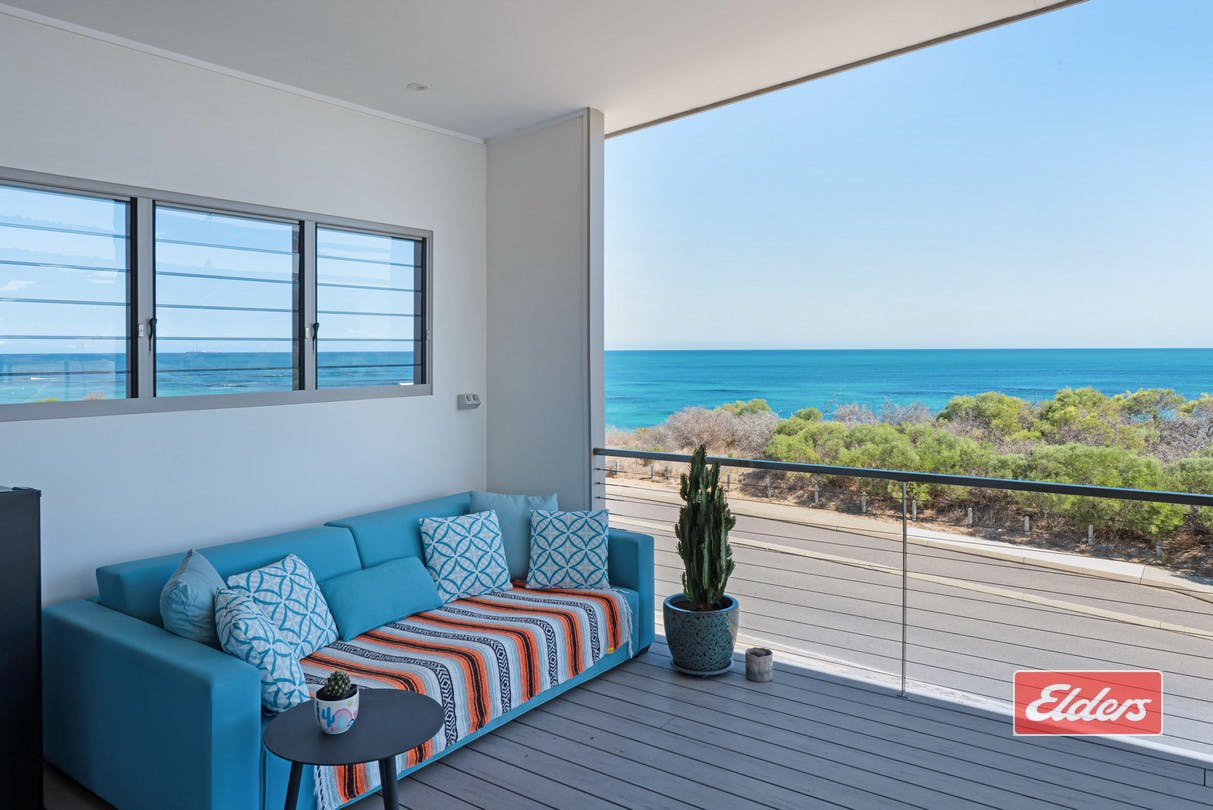 Beautiful wooden stairs take you up to the top floor where the magic really happens, the view from every angle is breathtaking, glass widows and large extending balcony lets you take in all the coastline for as far as the eye can see and it is simply the best view you will get on any stretch of coastline in WA. The kitchen is long and white with a walk-in pantry butlers' nook and cooling louvers to allow the sea breeze in whilst you are cooking. The bedrooms are simply stunning, large and colourful with the true feel of Scandinavia. The master has an ensuite that is next level, and the second bedroom has a balcony which faces the stunning coastline and sand dunes.