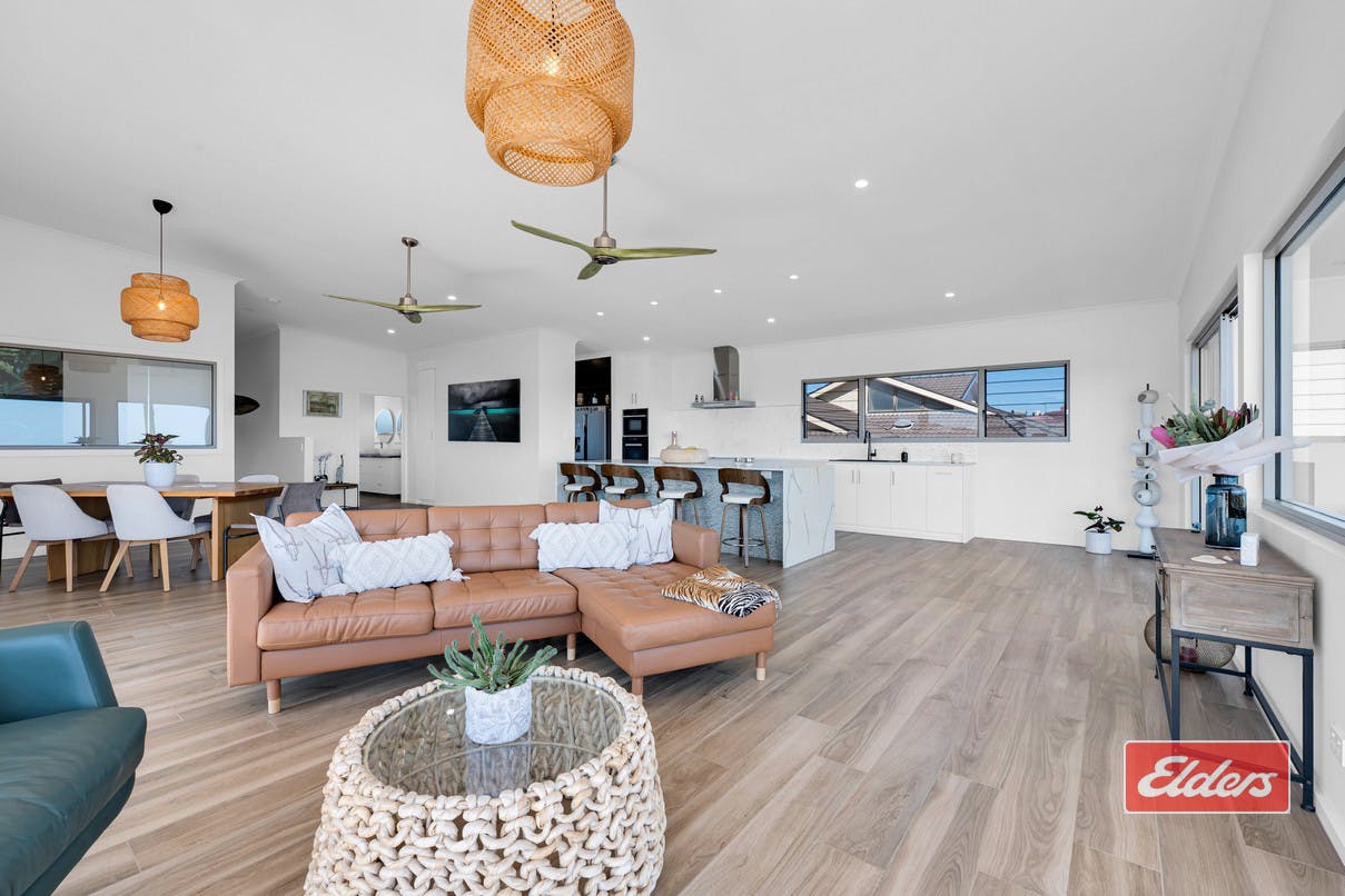 The property sits on a huge 999 m2 block of polished concrete, and garden, stainless steel patterned sliding security gate, limestone steps and tiled verandahs. The garden is easy care coastal planting and there Is a raised below ground pool with glass fencing. Down the rear of the fully fenced property is a large shed with concrete floor and power and a lawned area for the kids or dogs.