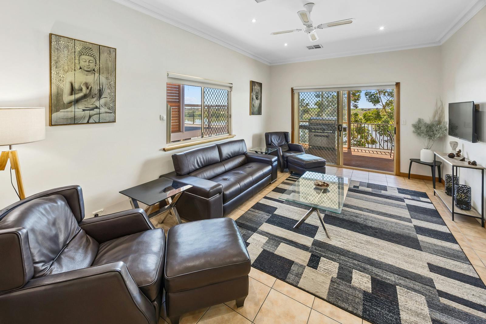 Offering three generous bedrooms. The main suite is a true retreat, featuring a walk-in robe, ensuite, ceiling fan, and sliding doors that open directly to the decked entertaining area-allowing you to wake up to peaceful river vistas each morning. Bedrooms two and three are of good size and are fitted with built-in robes and ceiling fans.