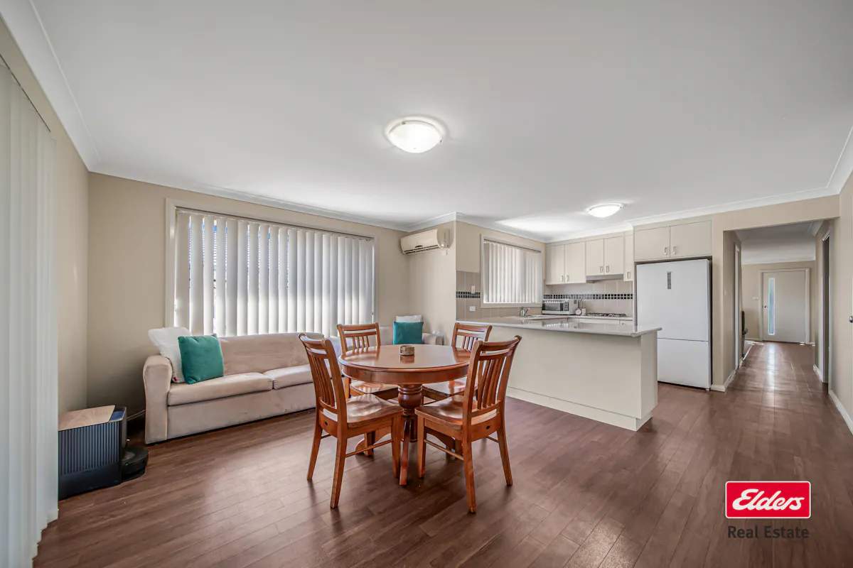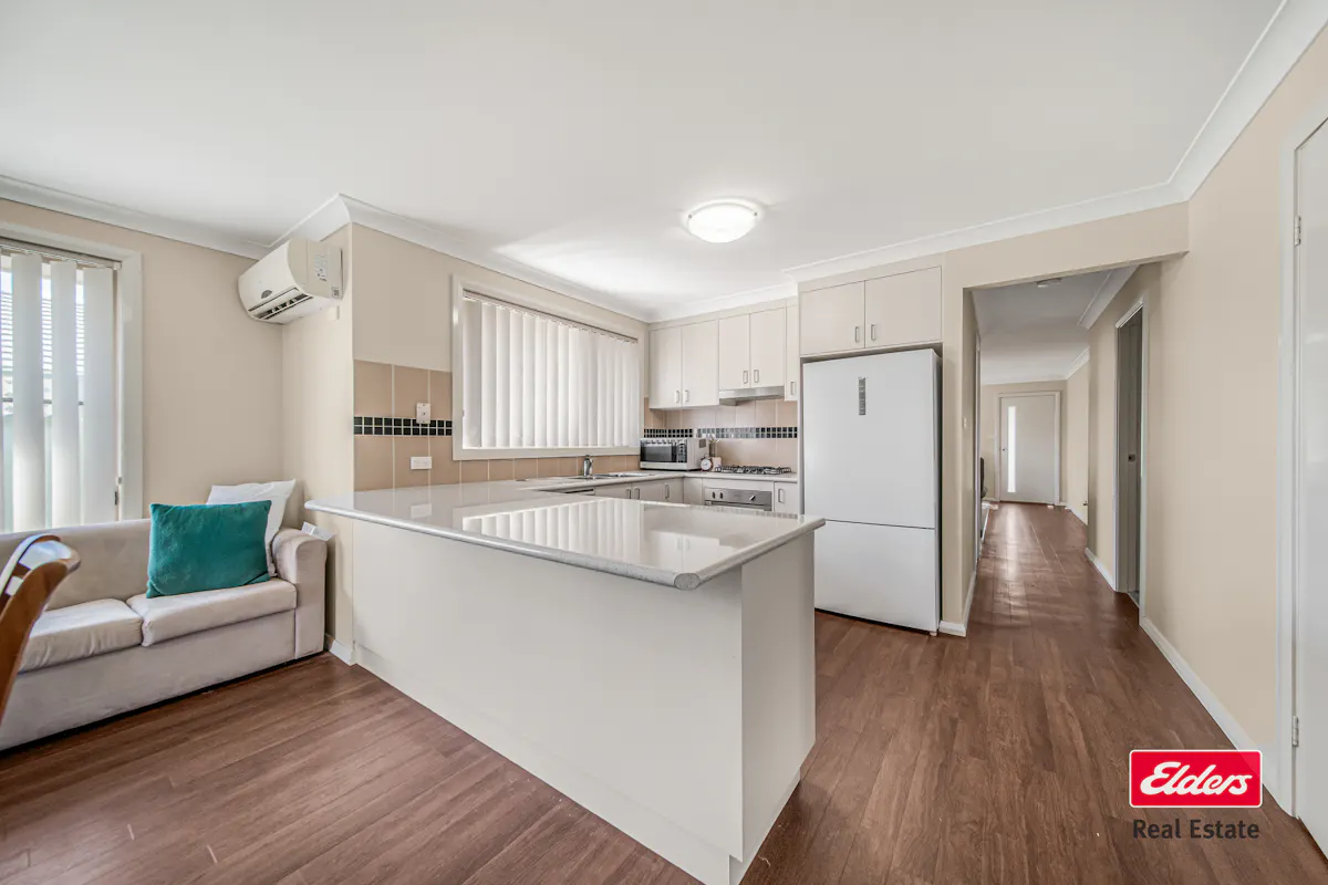 12B Lansdowne Drive is a thoughtfully designed 4-bedroom, 2-bathroom home ideally positioned in a sought-after area directly opposite Macquarie Anglican Grammar School (MAGS) and within convenient distance to Delroy Shopping Centre, childcare facilities, and the Dubbo CBD. Built with brick veneer and a Colorbond roof, this property combines solid construction with modern finishes and practical family-friendly living spaces. The home offers a functional layout with separate living areas at the front, flowing into a spacious open-plan dining and kitchen zone, featuring vinyl flooring for durability and easy maintenance. Natural light fills the home, creating a bright and welcoming environment for families.The property caters to comfort and convenience, boasting a main bedroom with ensuite including shower, bath, and toilet, complemented by built-in robes in all bedrooms. The kitchen is well-appointed with a gas stove and dishwasher, while indoor comfort is enhanced with two split-system air conditioners and a gas point for heating. The single garage at the front provides secure parking and direct access, while the well-maintained outdoor spaces offer a low-maintenance environment for modern family living.