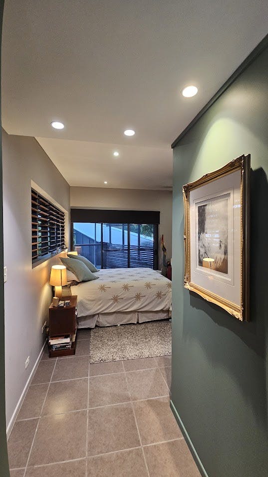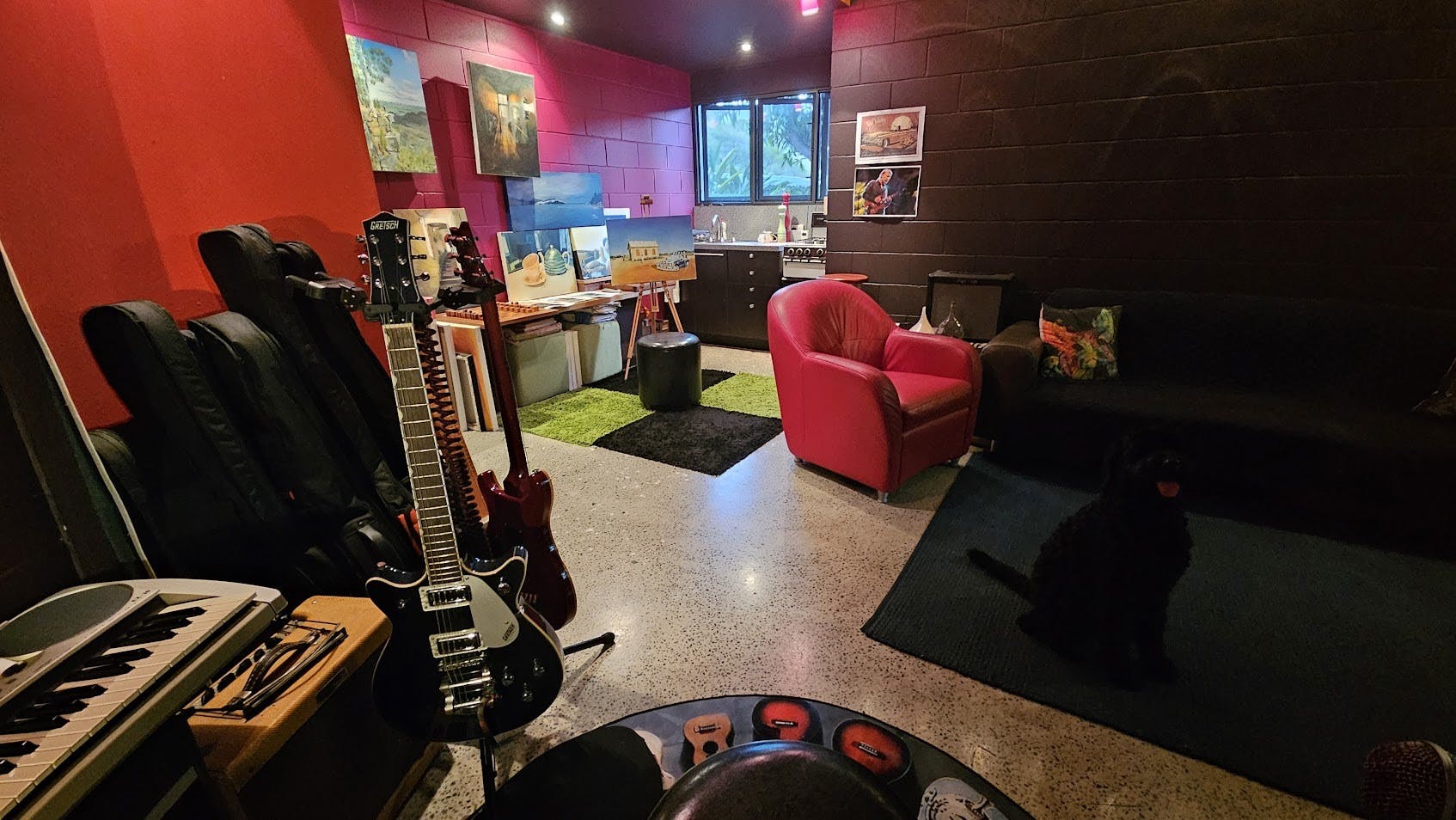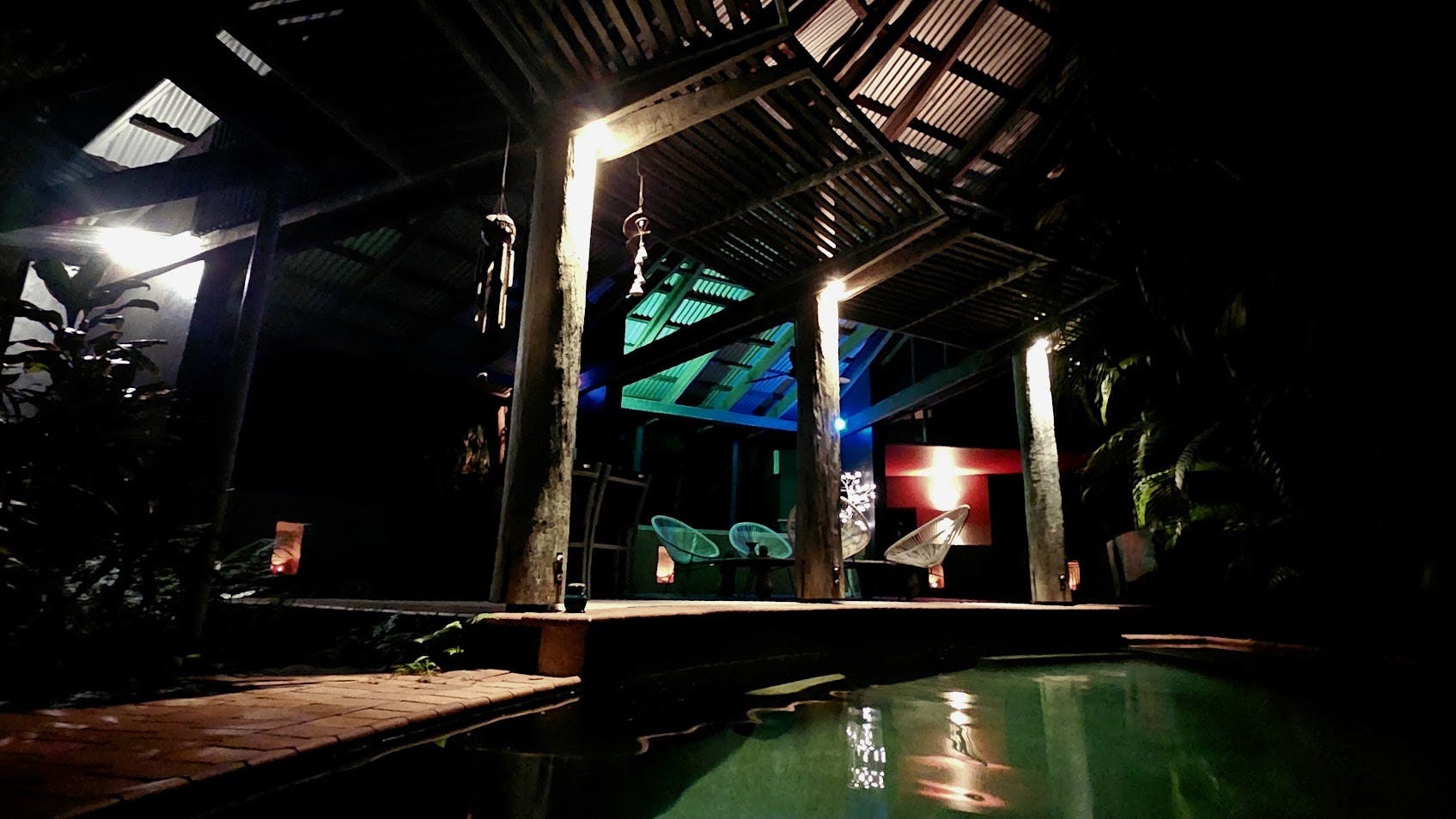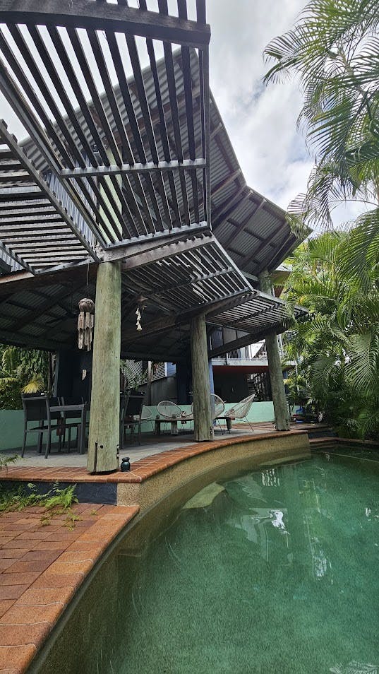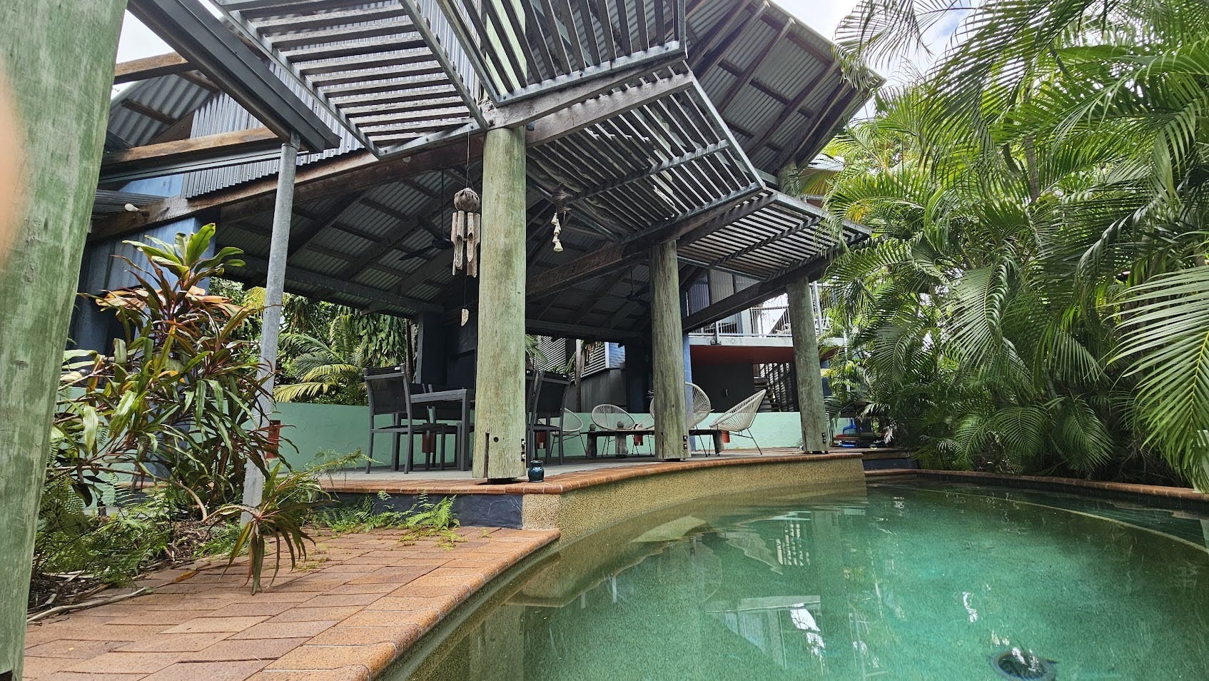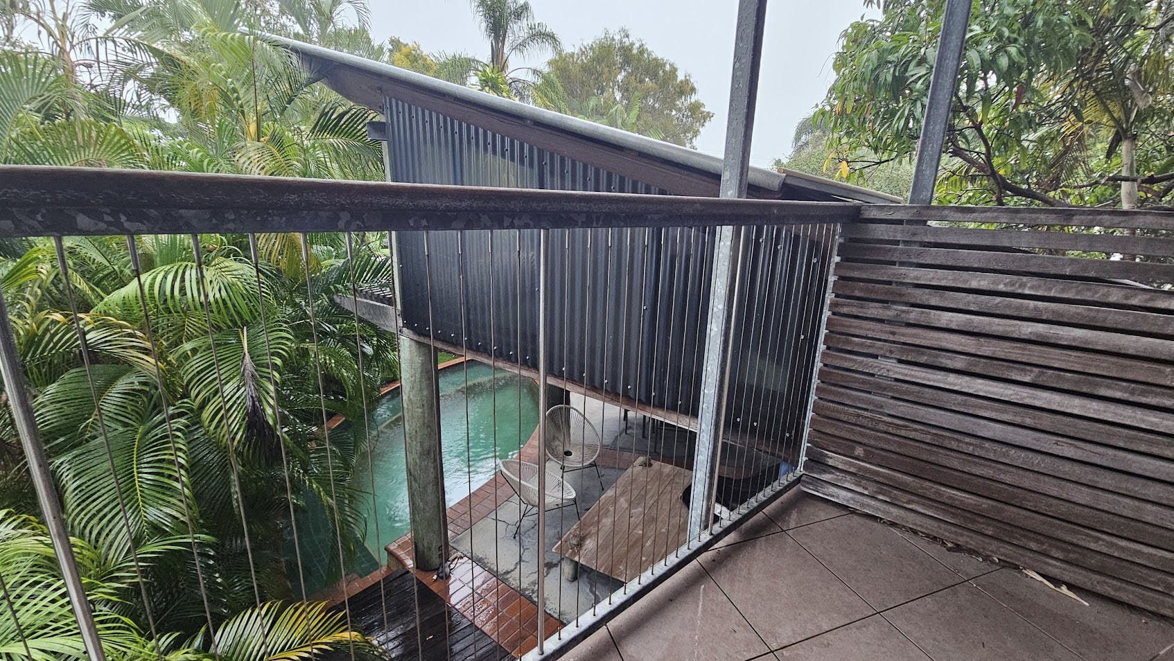 The rear, two storey building is a real surprise package. Upstairs is a parents' retreat nestled between advanced trees, comprising a grand bedroom space, walk-in robe, ensuite with separate toilet and a secluded balcony overlooking the pool. Downstairs is a multi-purpose living space with kitchenette and polished concrete floors. This building is wired to accept emergency generator power if ever required.