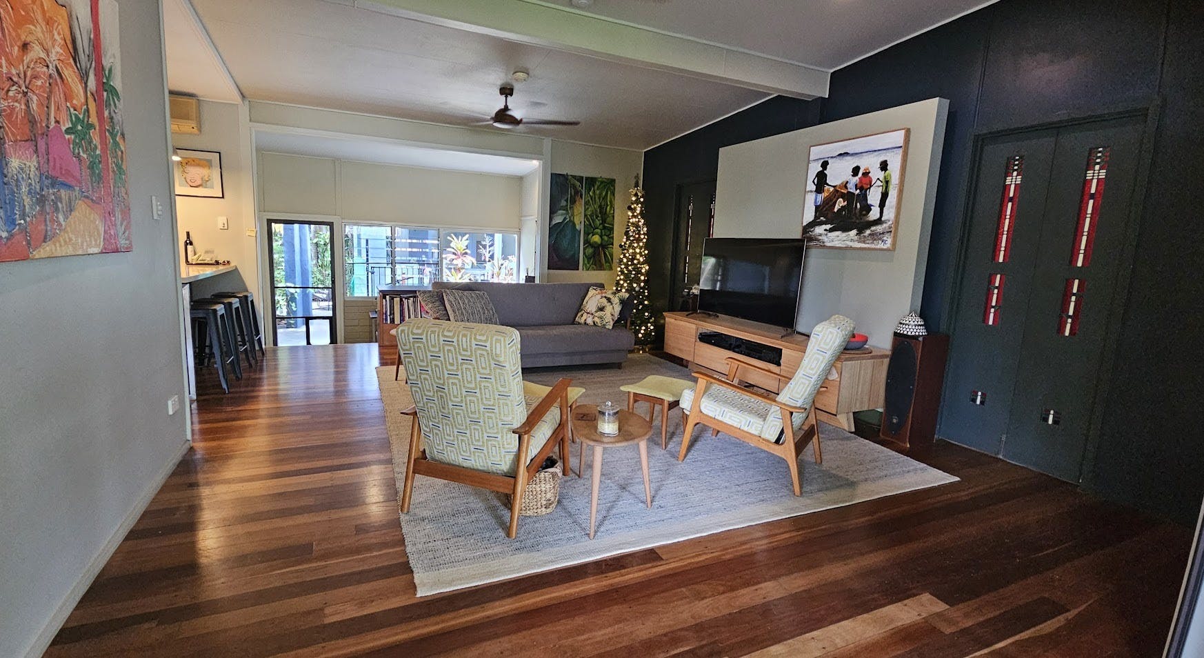 This property has been owned and renovated by a well known architect and offered For Sale for the first time in over 30 years.The home has been remodelled in a pavilion style, responding to the influences of location and climate. The front, and original single storey portion consists of 2 bedrooms with BIR, spacious living area, dining room (or 4th bedroom) plus the main bathroom with spa bath and separate toilet and laundry. The modern kitchen has generous cupboards and bench space, floors are hardwood and each space is air-conditioned.